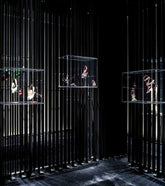 Person in a laboratory setting wearing a white coat, working with equipment.