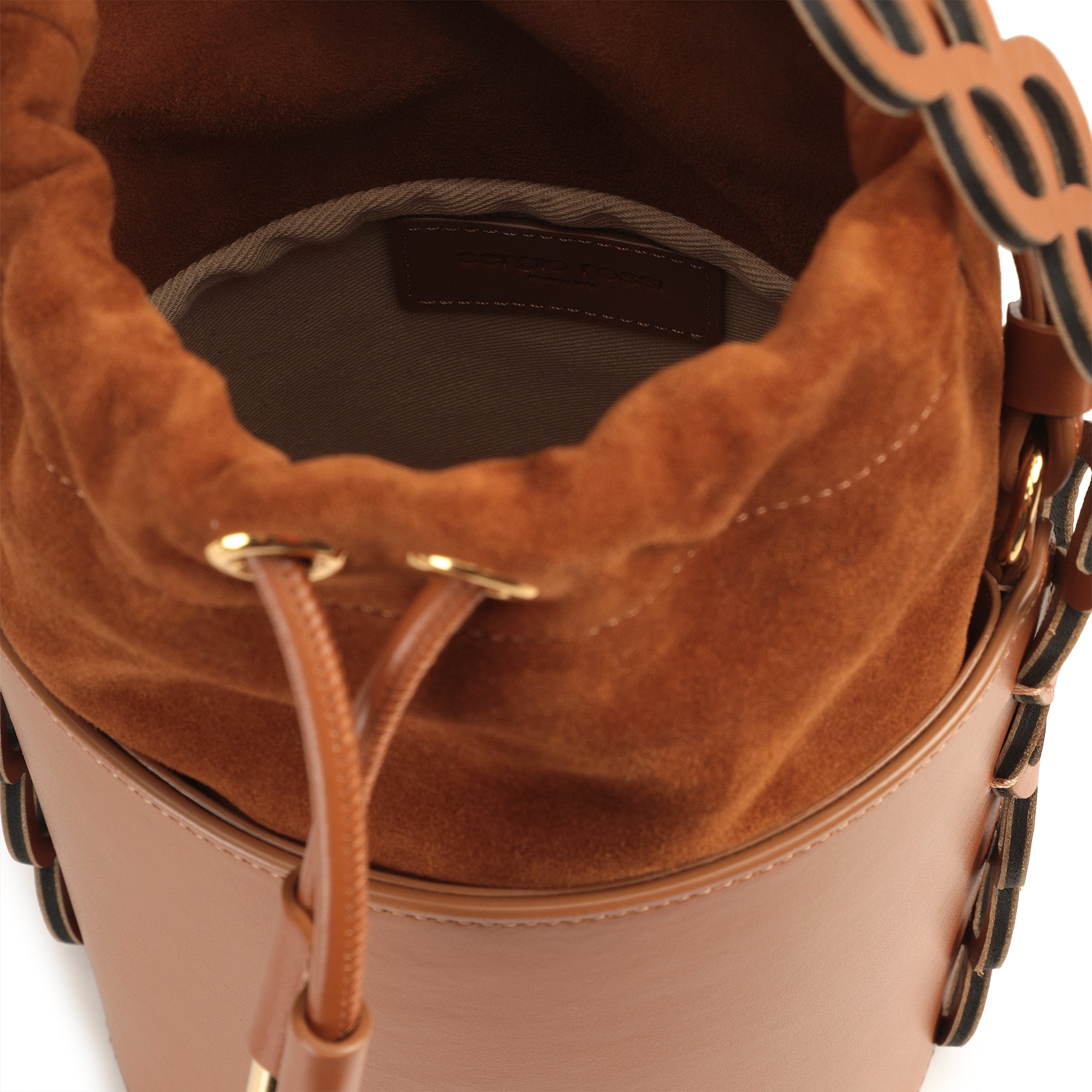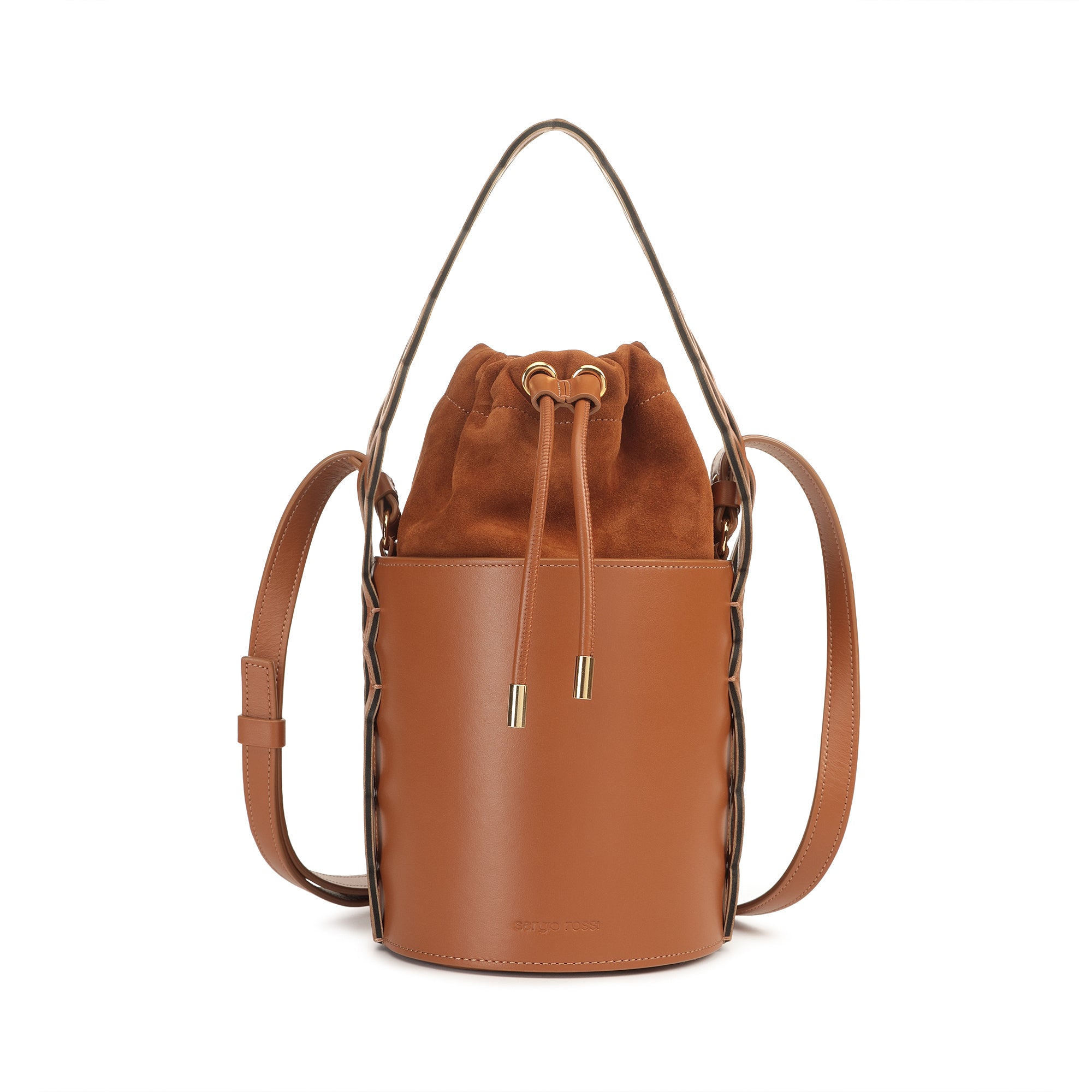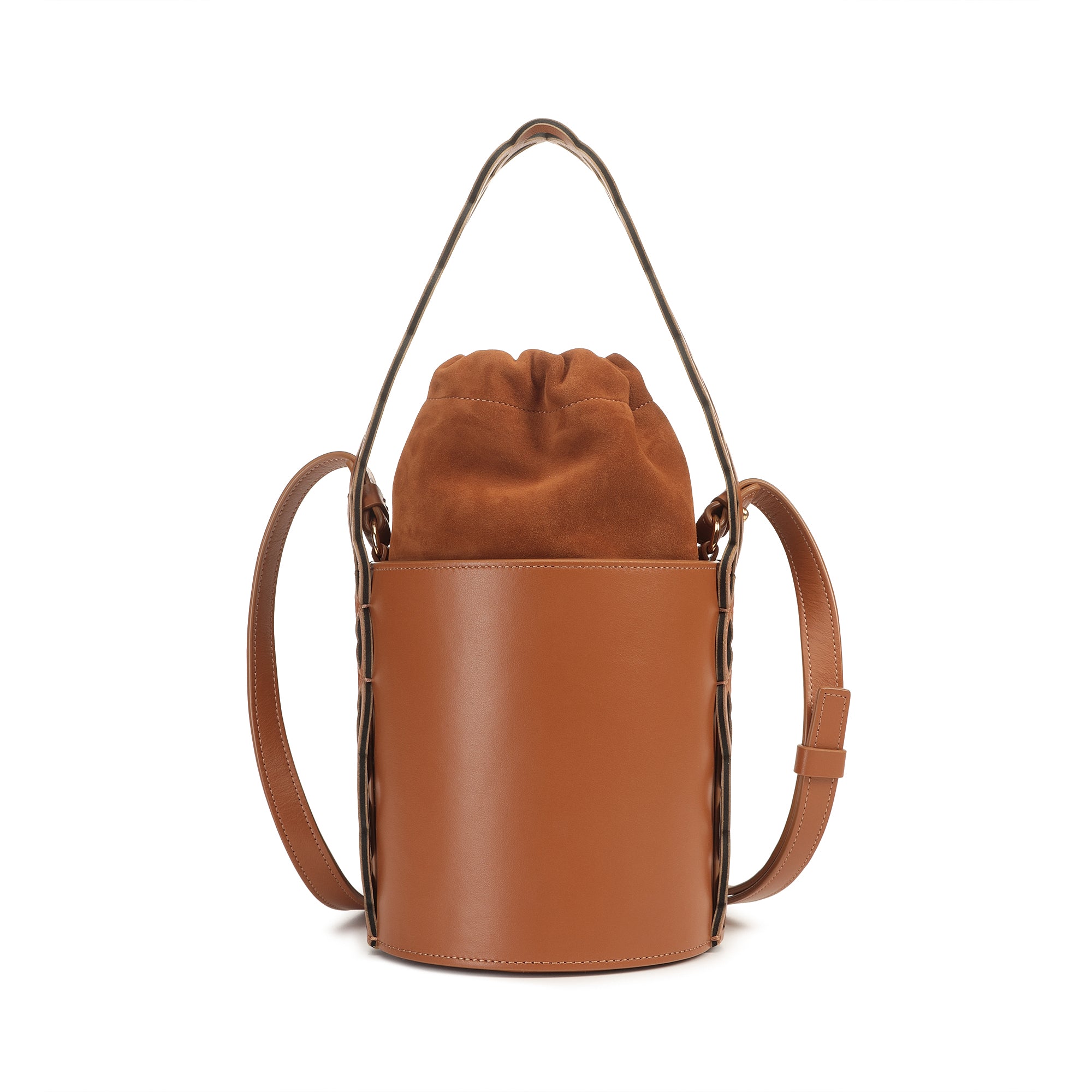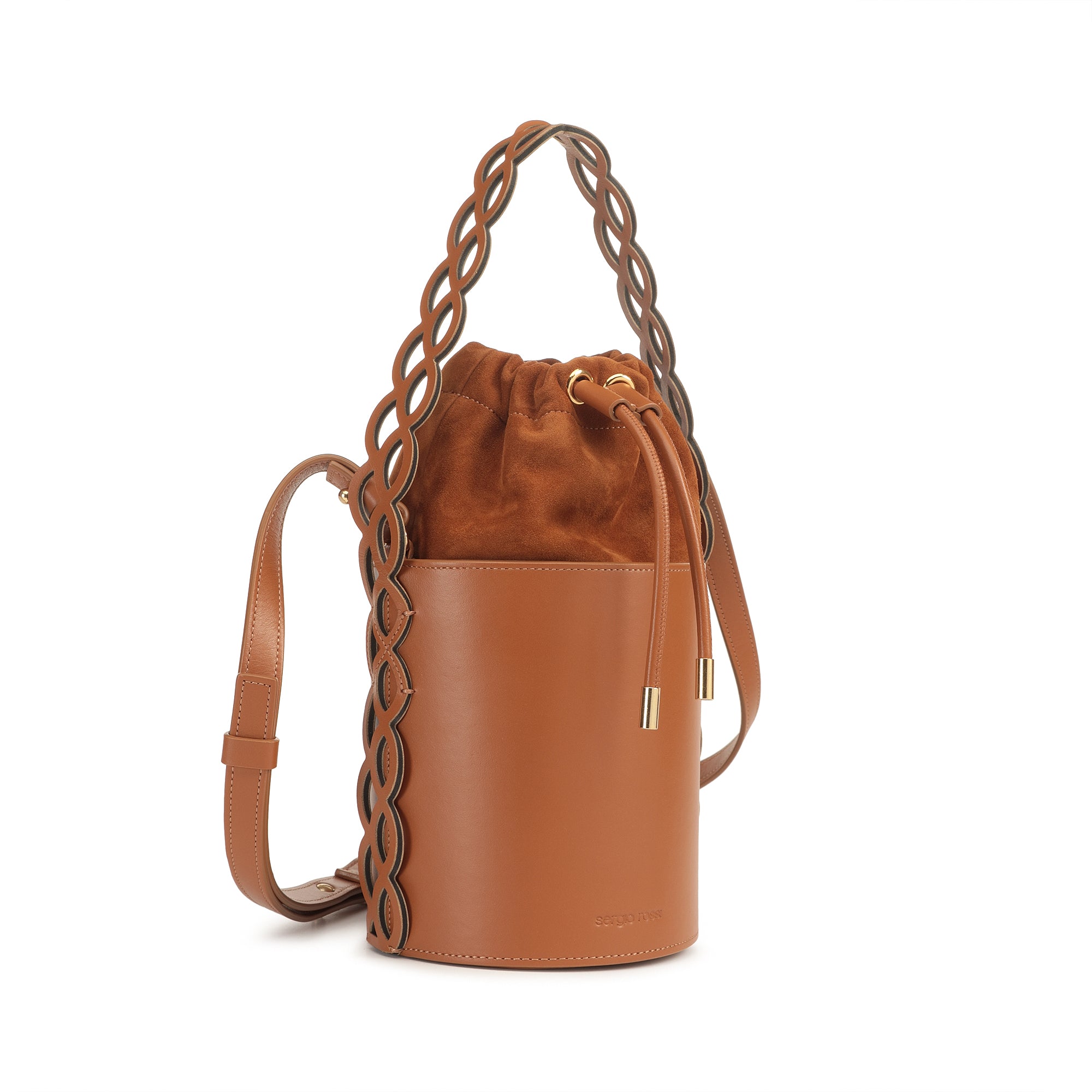 A refined light brown shade adds personality to this sr Mermaid bucket bag in leather and suede, equipped with a practical adjustable strap. Elevated by the iconic openwork motif along the handle, it was tailor-made for the woman in search of head-to-toe sophistication.