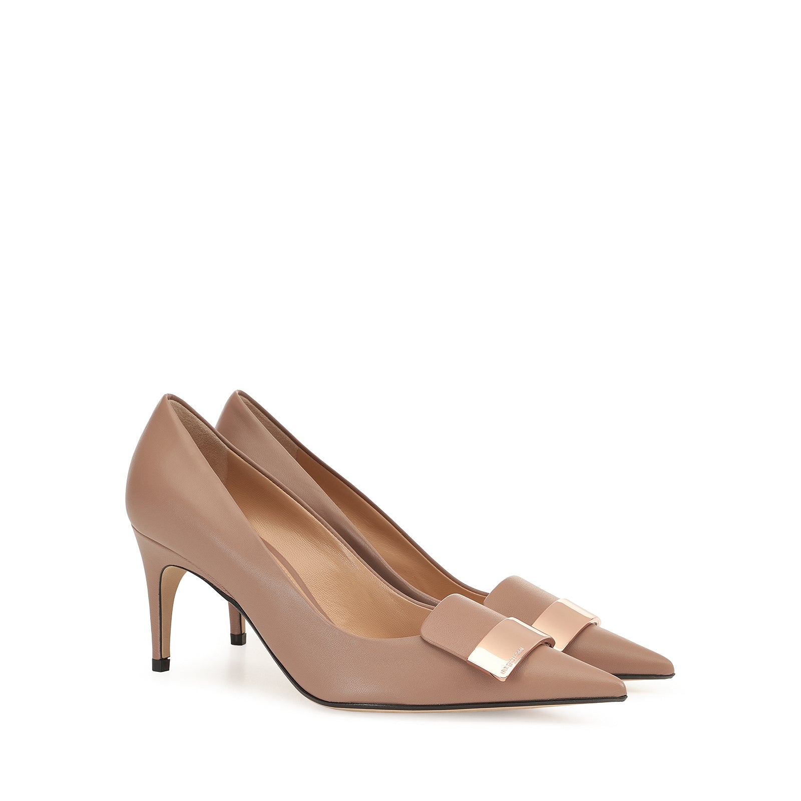 All smooth or grained leathers should be cleaned with a soft, clean, dry cloth to remove excess dust and dirt. To revive the color, apply a small quantity of neutral wax-based shoe cream and buff with a soft cloth. Avoid direct contact with substances that contain alcohol (perfumes, solvents), oils (makeup) and abrasives. Avoid direct exposure to sunlight and heat. Do not expose to humidity. In the case of direct contact with water, allow to dry carefully in a cool, well-ventilated place. Always put the shoes away in the two separate dust bags provided.