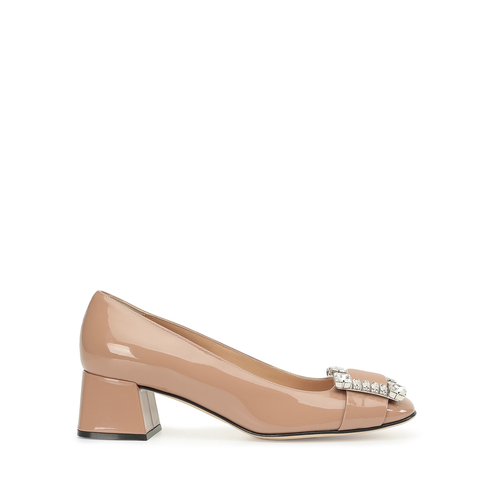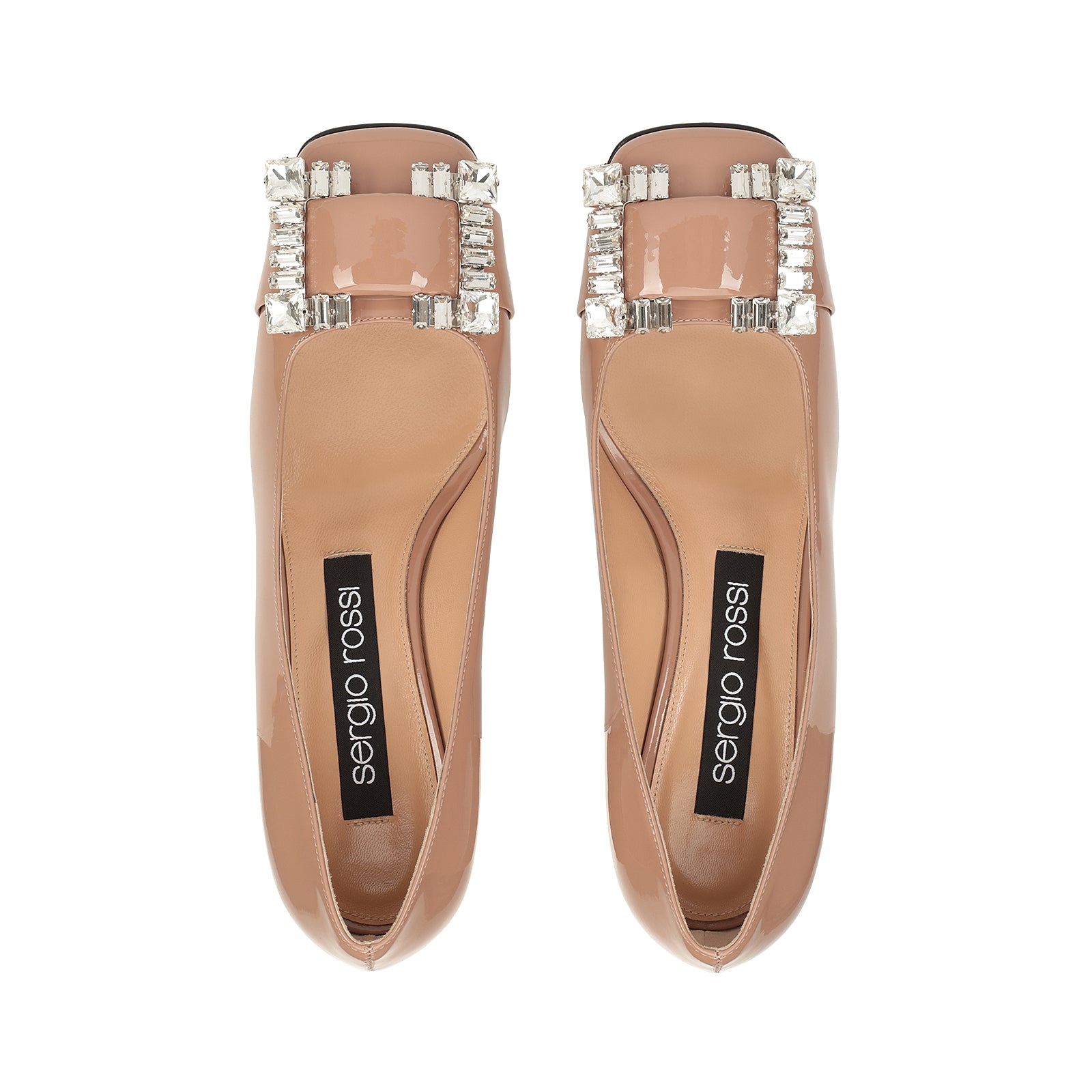 Clean with a soft, clean, dry cloth to remove excess dust and dirt. Patent leathers are highly sensitive to color transfer. You are therefore advised to carefully avoid contact with other materials. Always put the shoes away in the two separate dust bags provided. The metallic finish on laminated leathers is extremely delicate and can easily be scraped. Once it has been damaged it cannot be returned to its original appearance. This is not considered to be a defect, but a characteristic of the material. Avoid direct contact with substances that contain alcohol (perfumes, solvents), oils (makeup) and all abrasive substances. Avoid direct exposure to sunlight and heat. Do not expose to humidity. In the case of direct contact with water, allow to dry carefully in a cool, well-ventilated place.