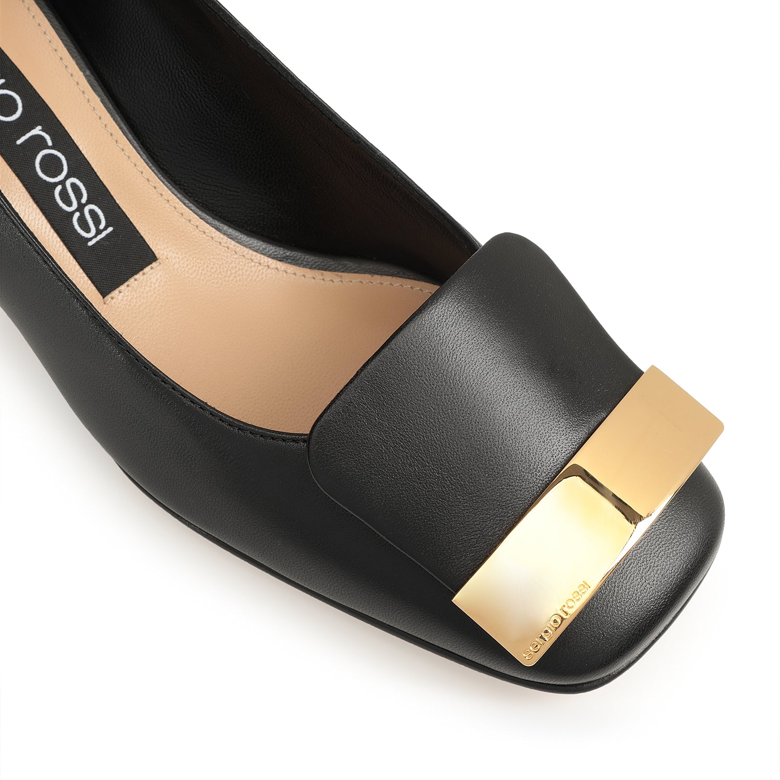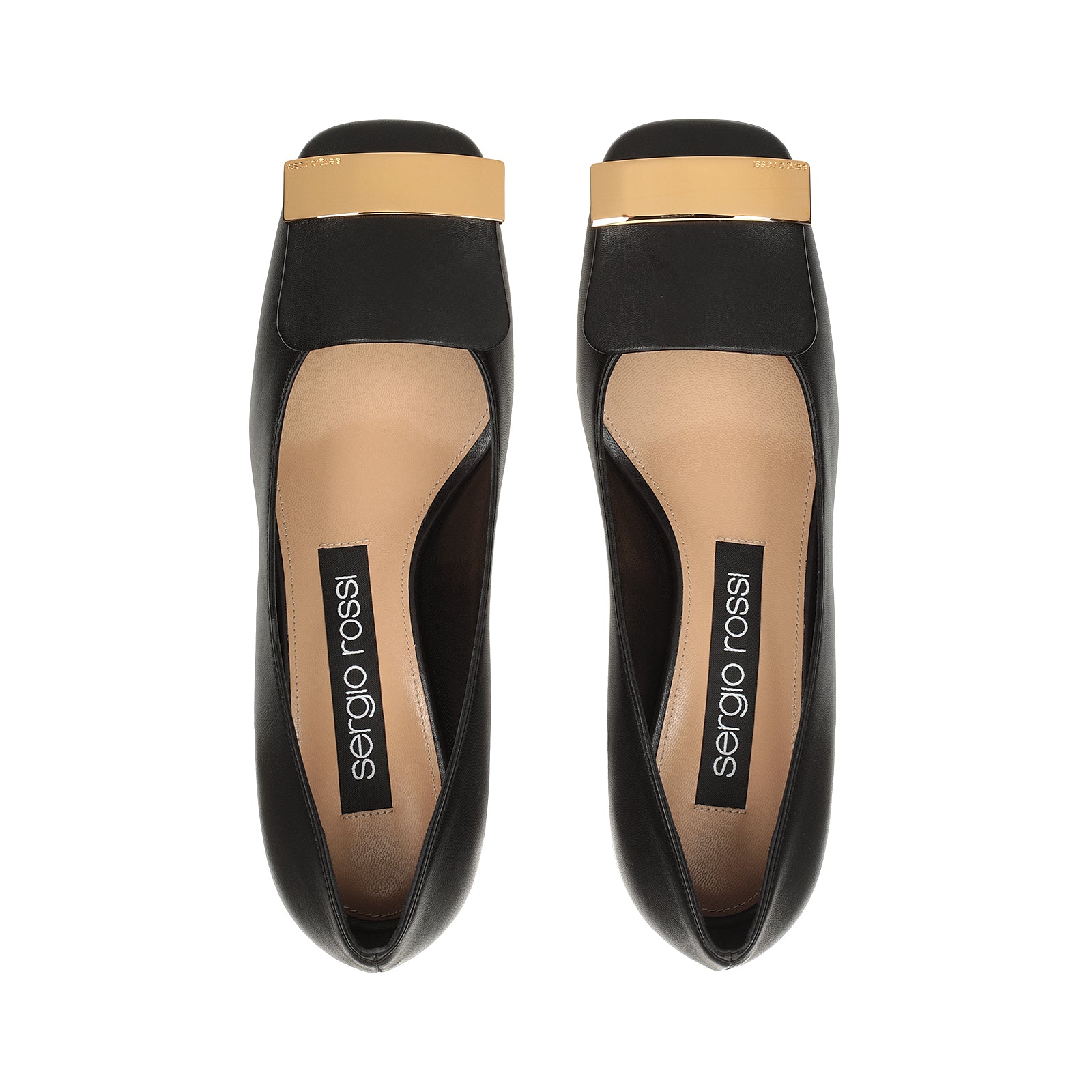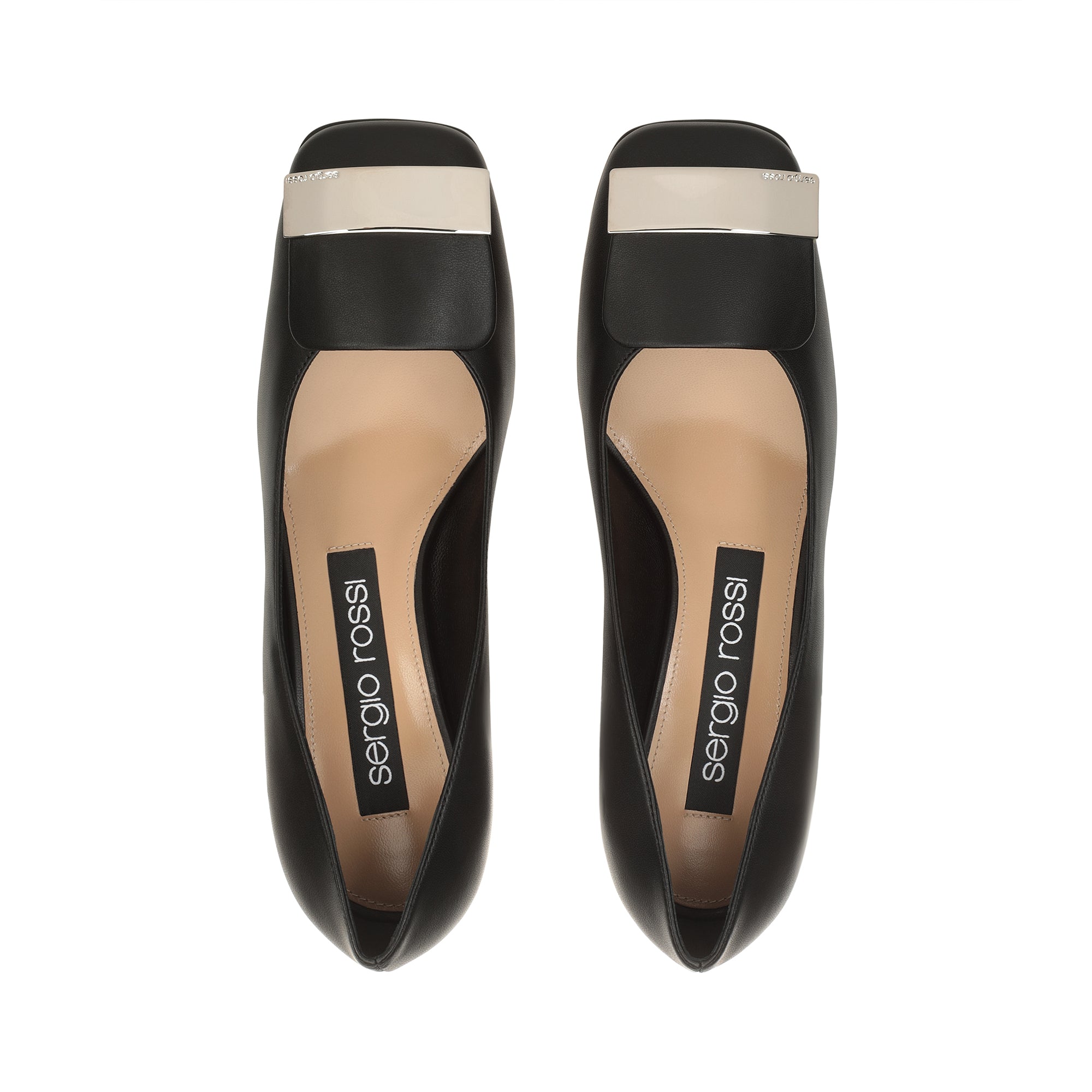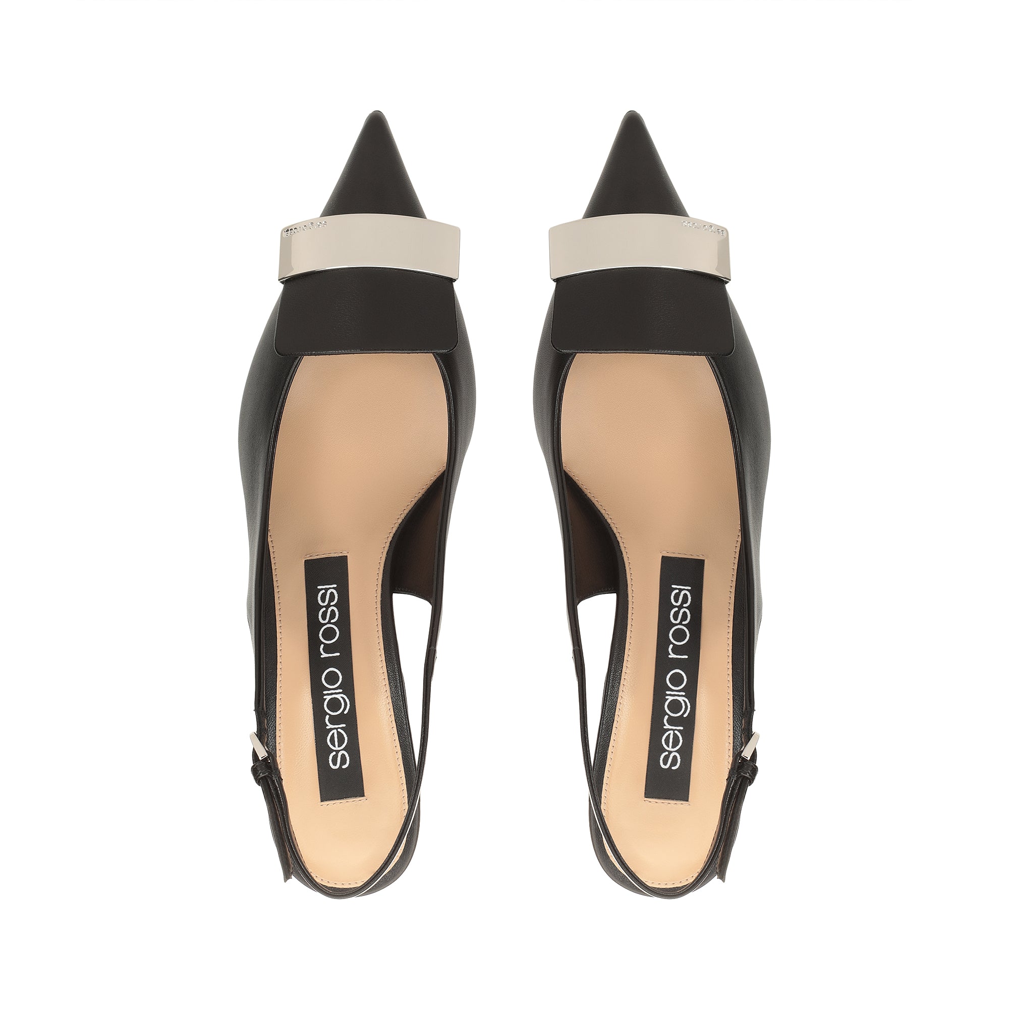 The luxury pumps from the sr1 collection, embellished with a metallic detail, are a compelling way of expressing your innate sensuality. Opt for a pair of pumps in exquisite dark brown leather to complete your more eclectic outfits or show off your classic side with a pair of black patent pumps.