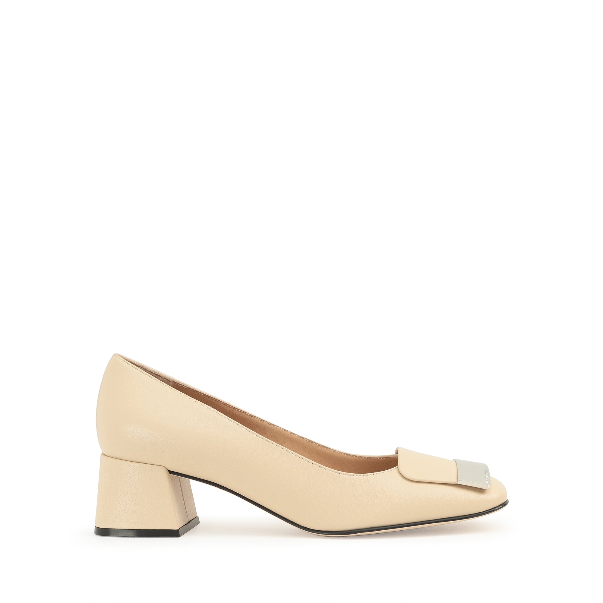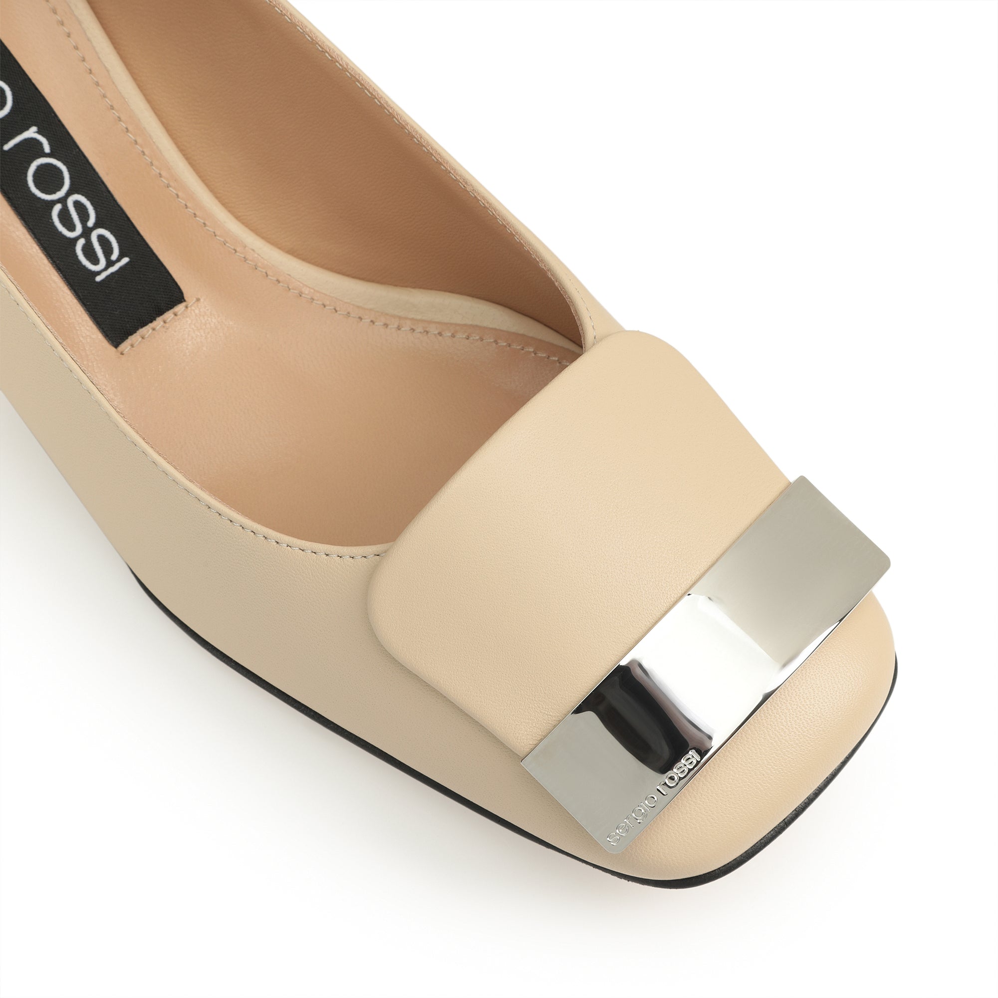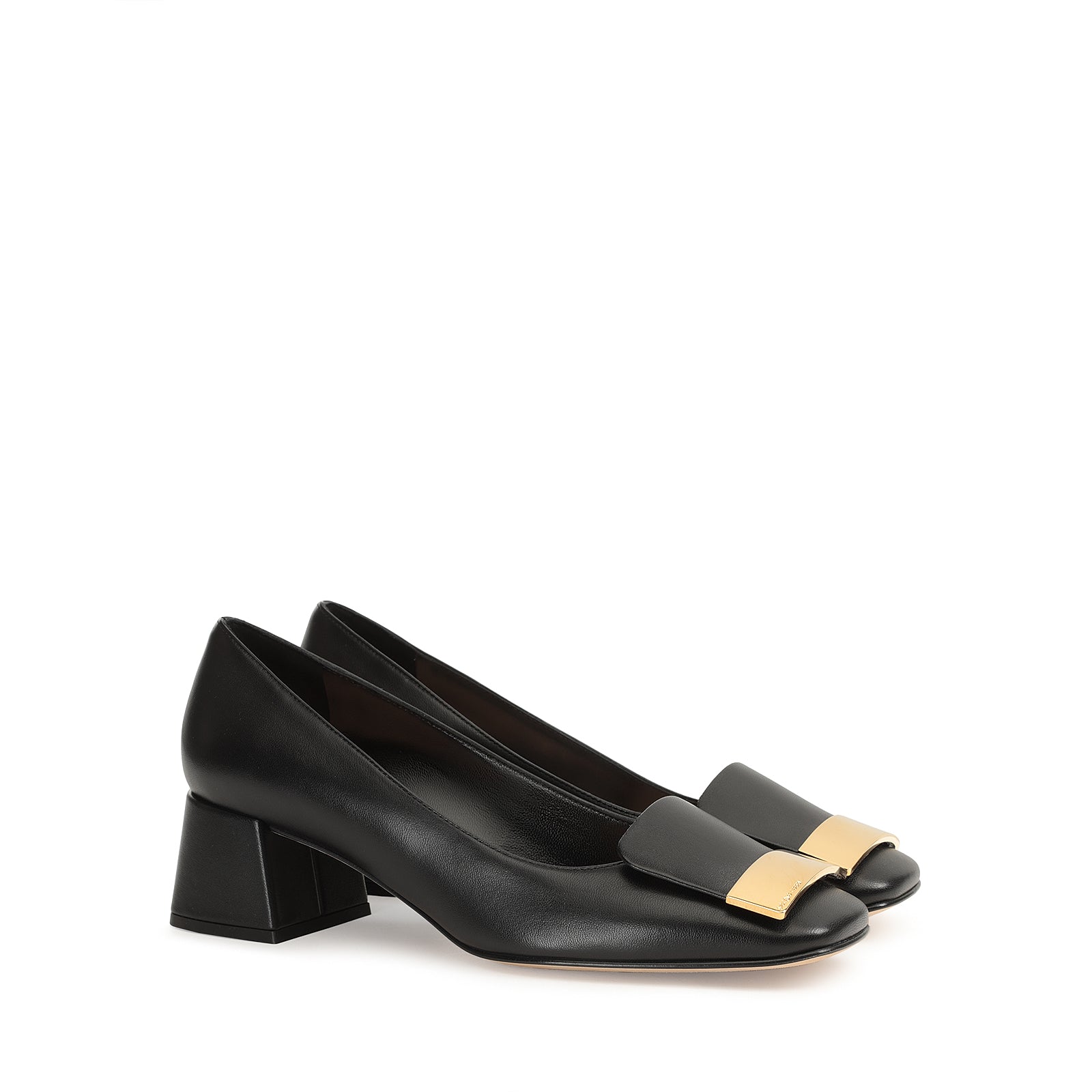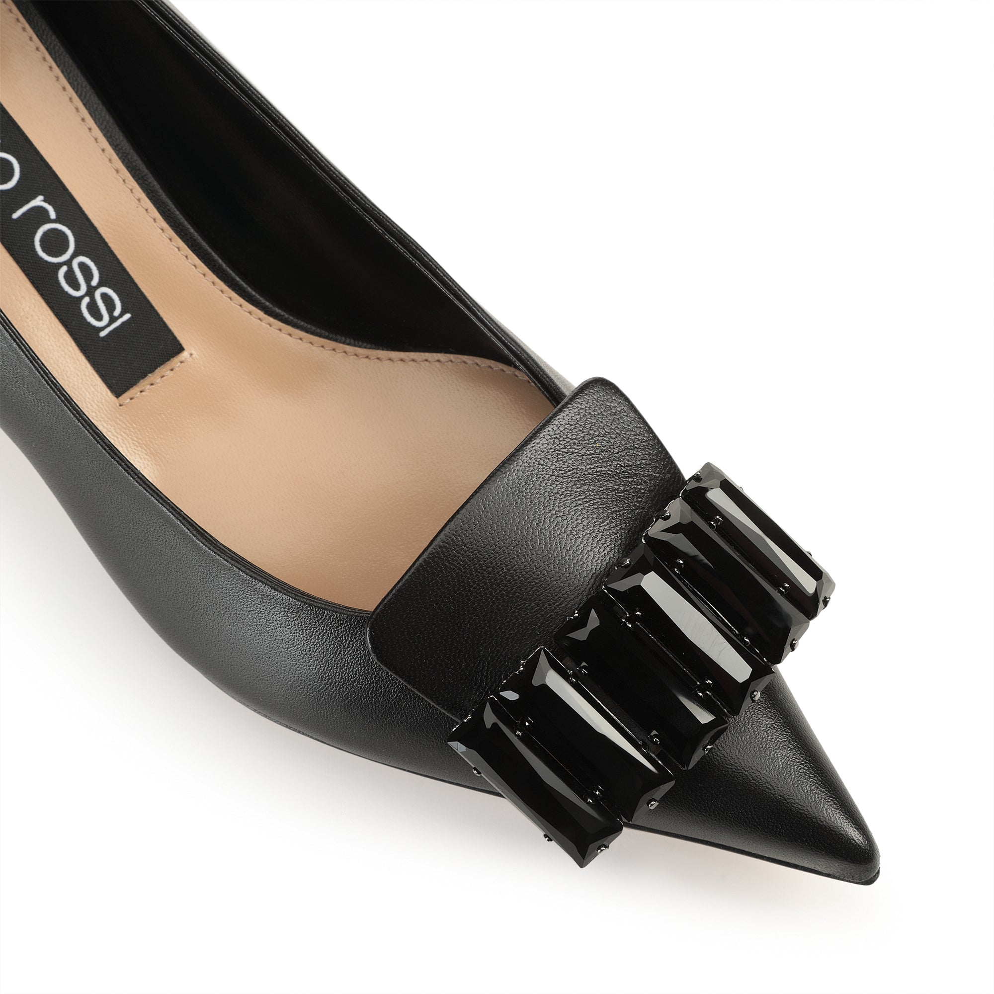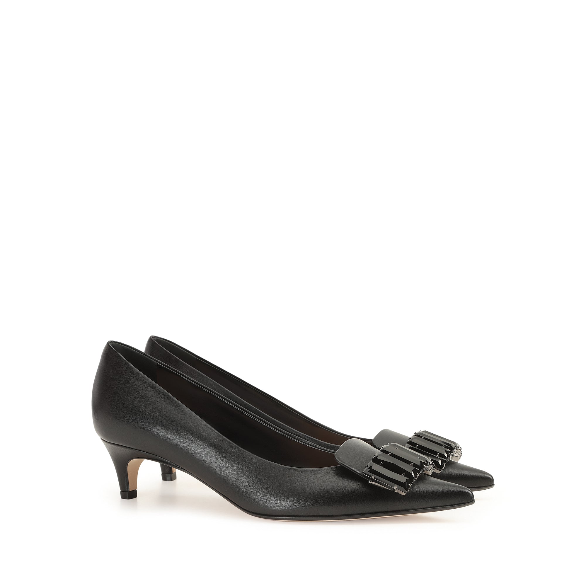 The luxury pumps from the sr1 collection, embellished with a metallic detail, are a compelling way of expressing your innate sensuality. Opt for a pair of pumps in exquisite dark brown leather to complete your more eclectic outfits or show off your classic side with a pair of black patent pumps.