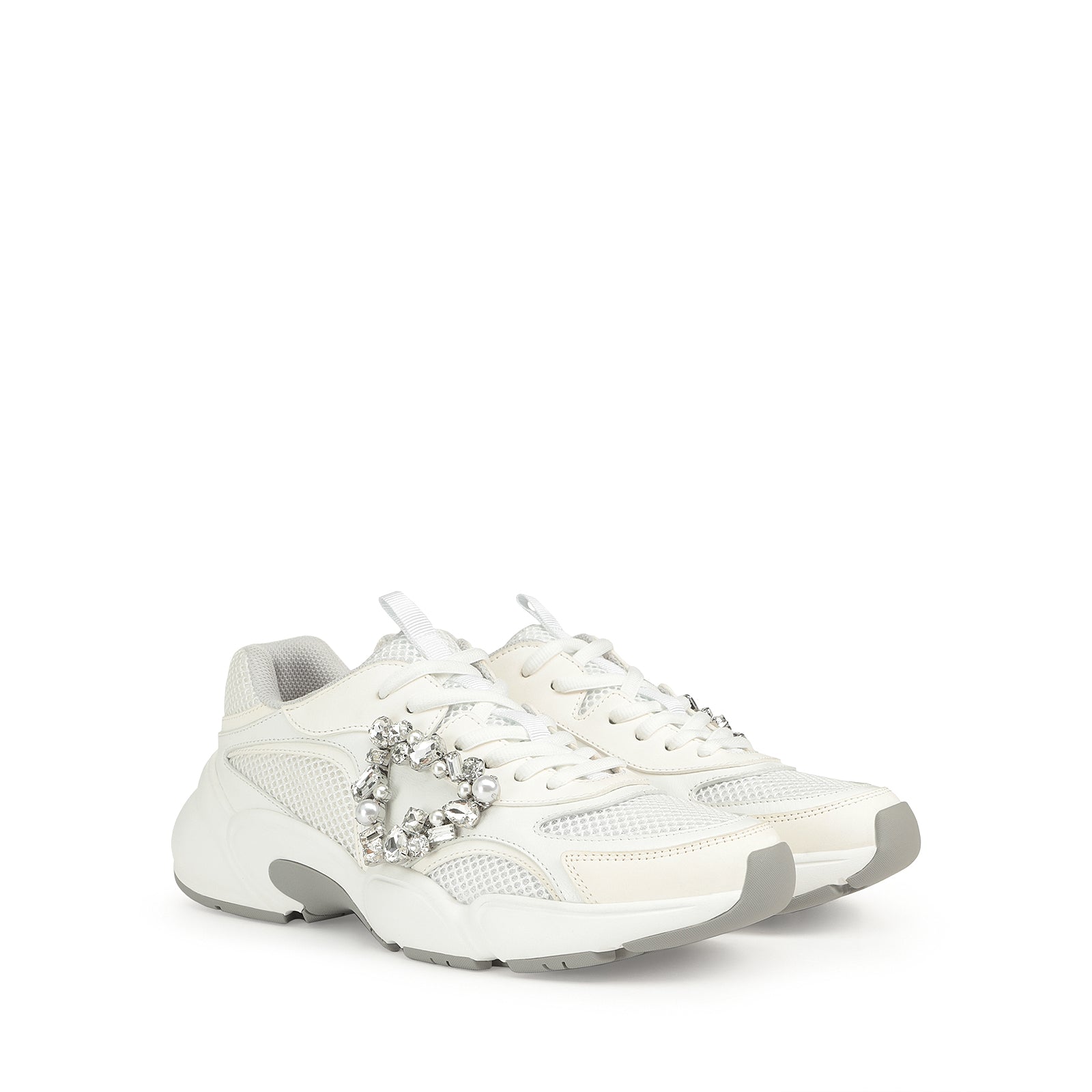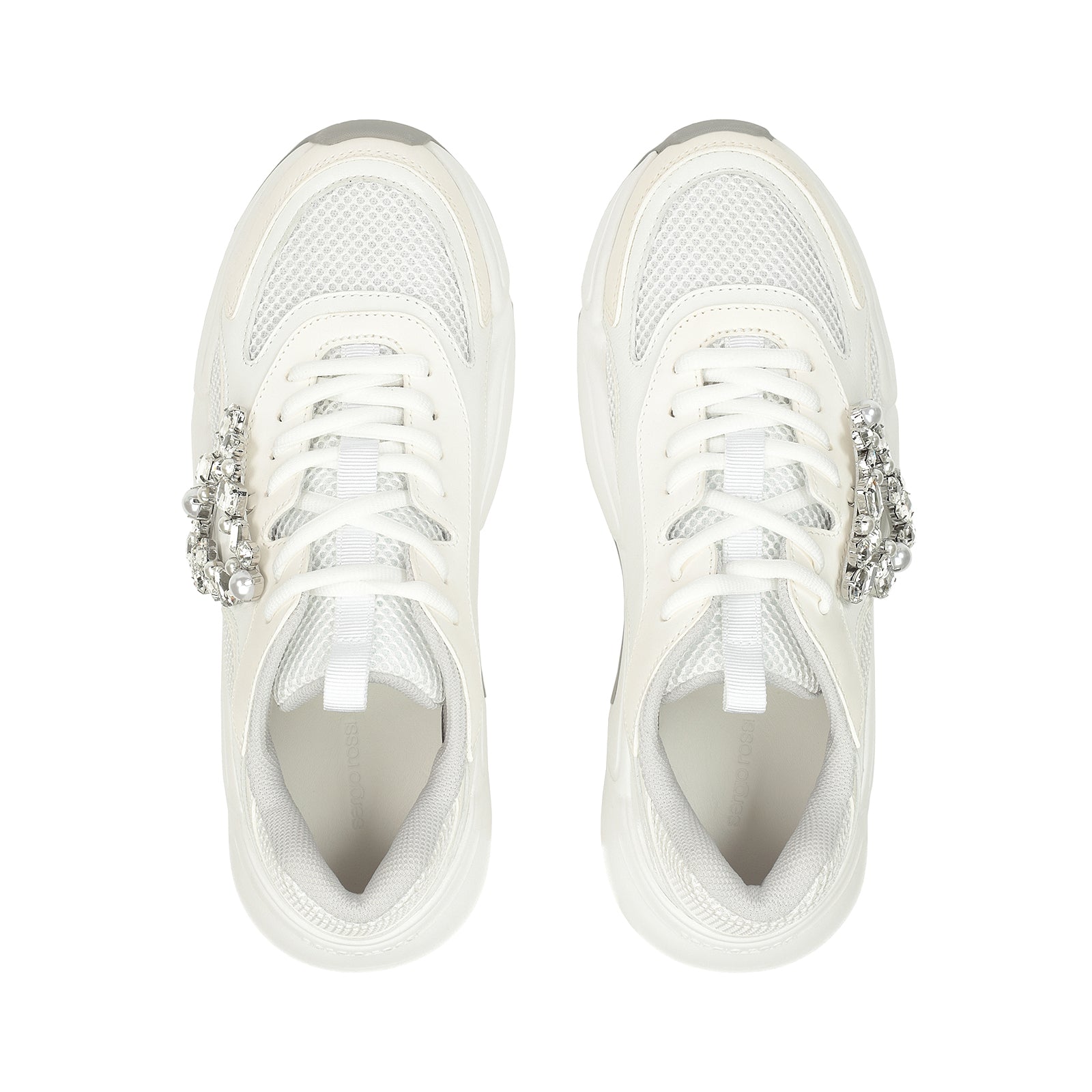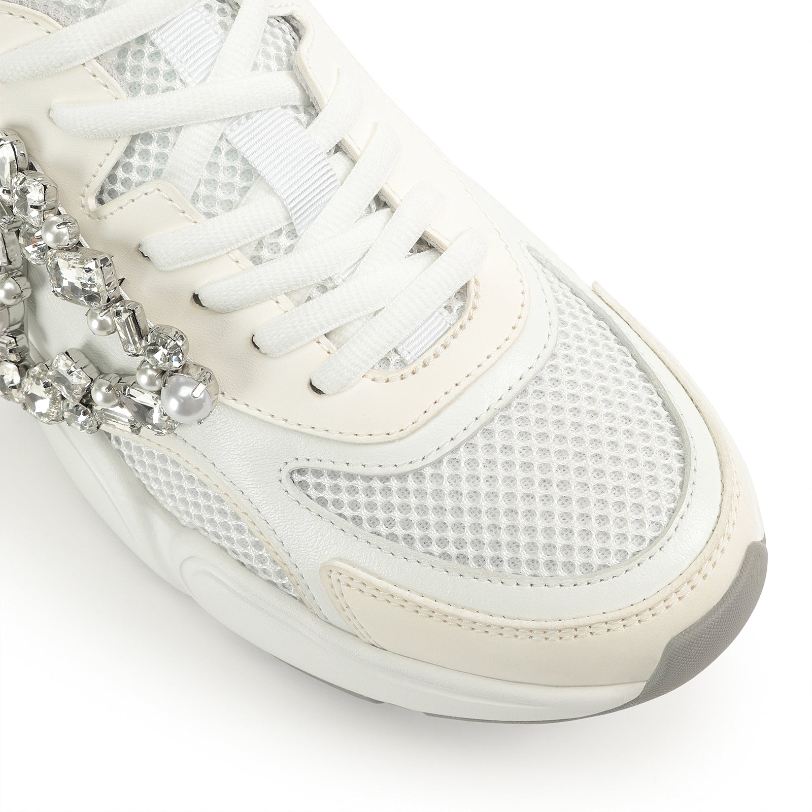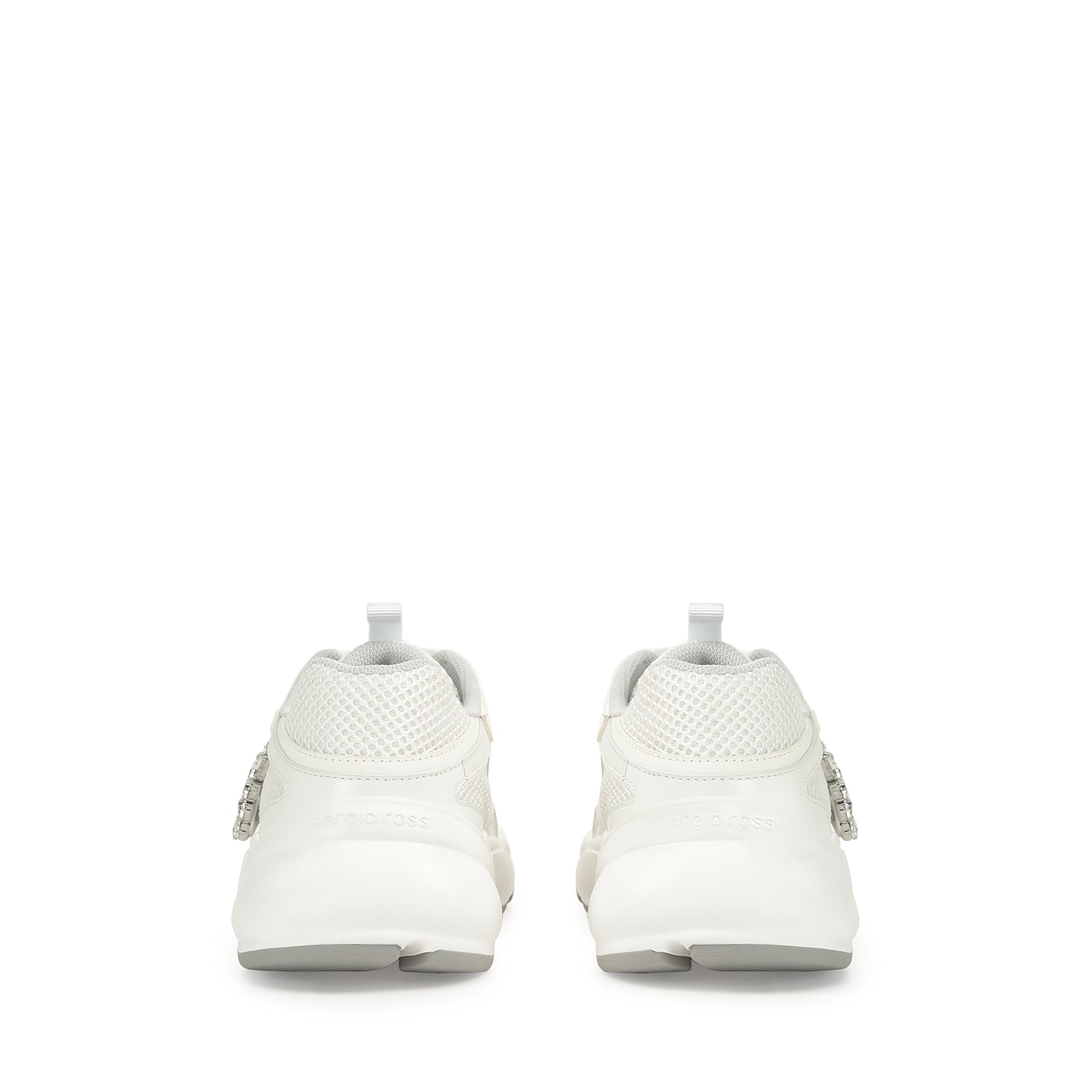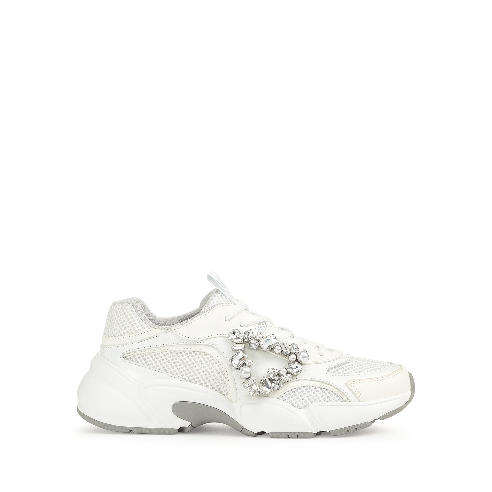 These sr0024 sneakers in all-white leather, nubuck, and technical fabric offer precious charm. An unexpected embellishment in pearls and crystals takes their edgy silhouette to new style heights. For an unmatched shine on the city streets.
