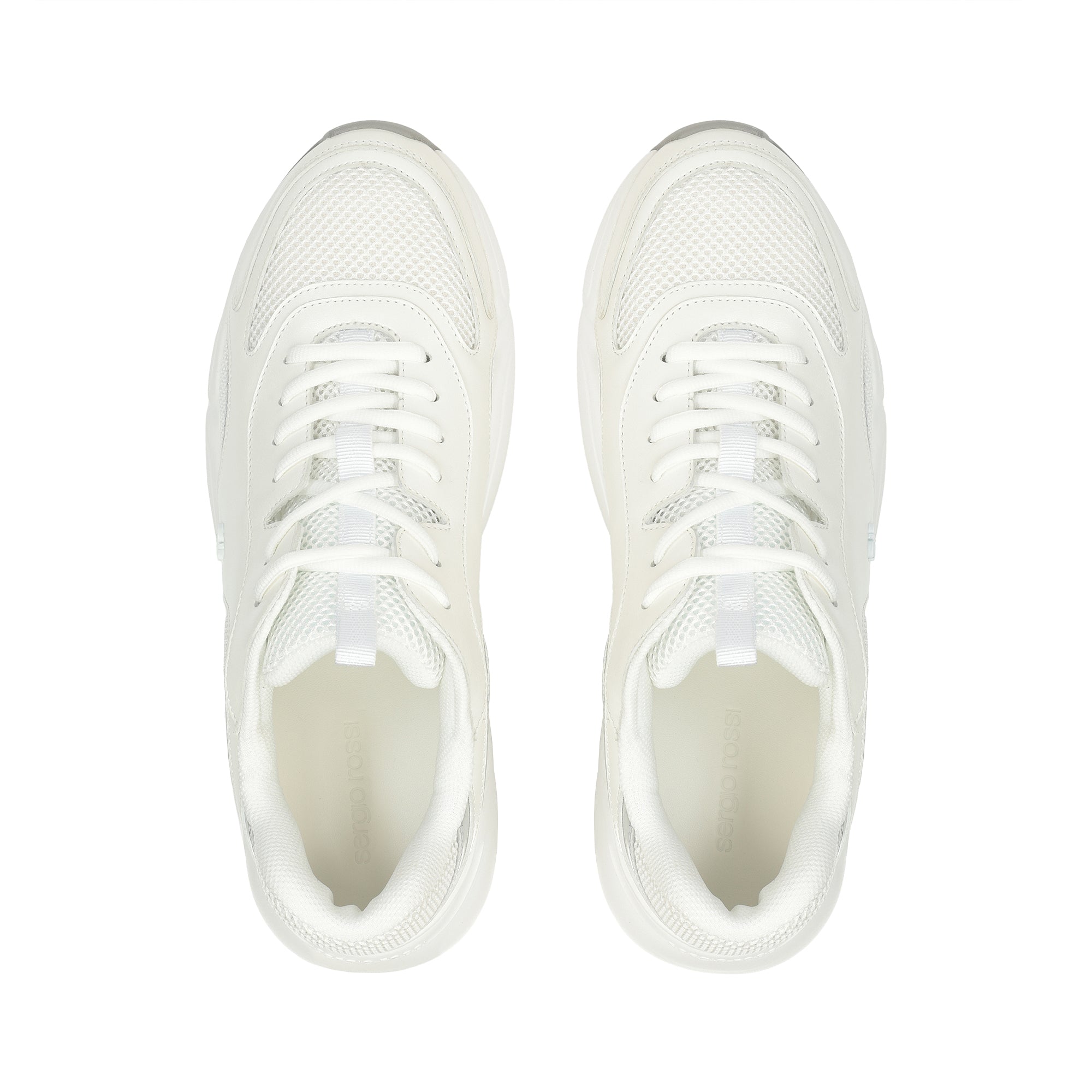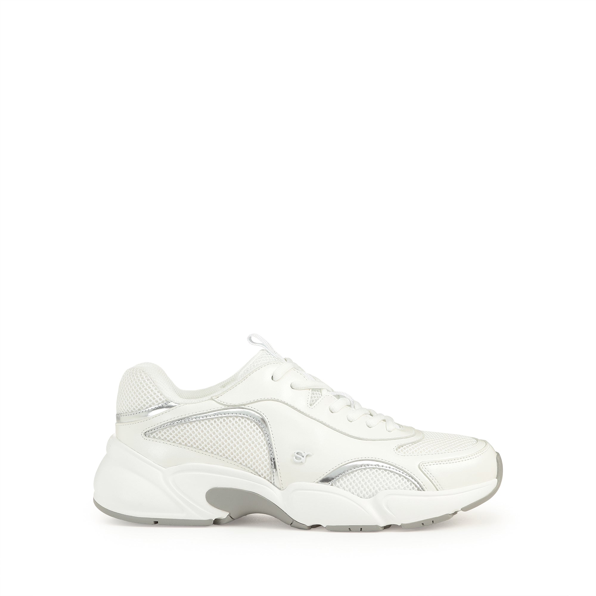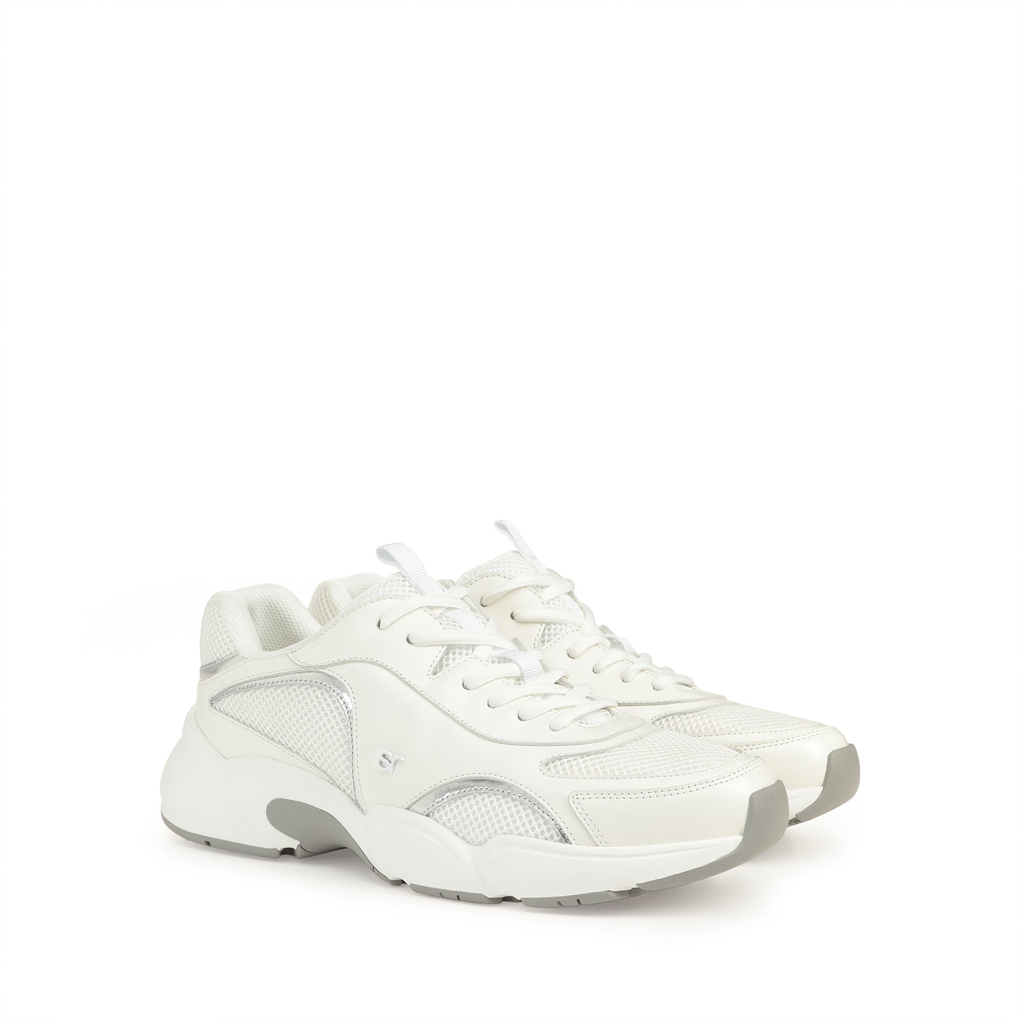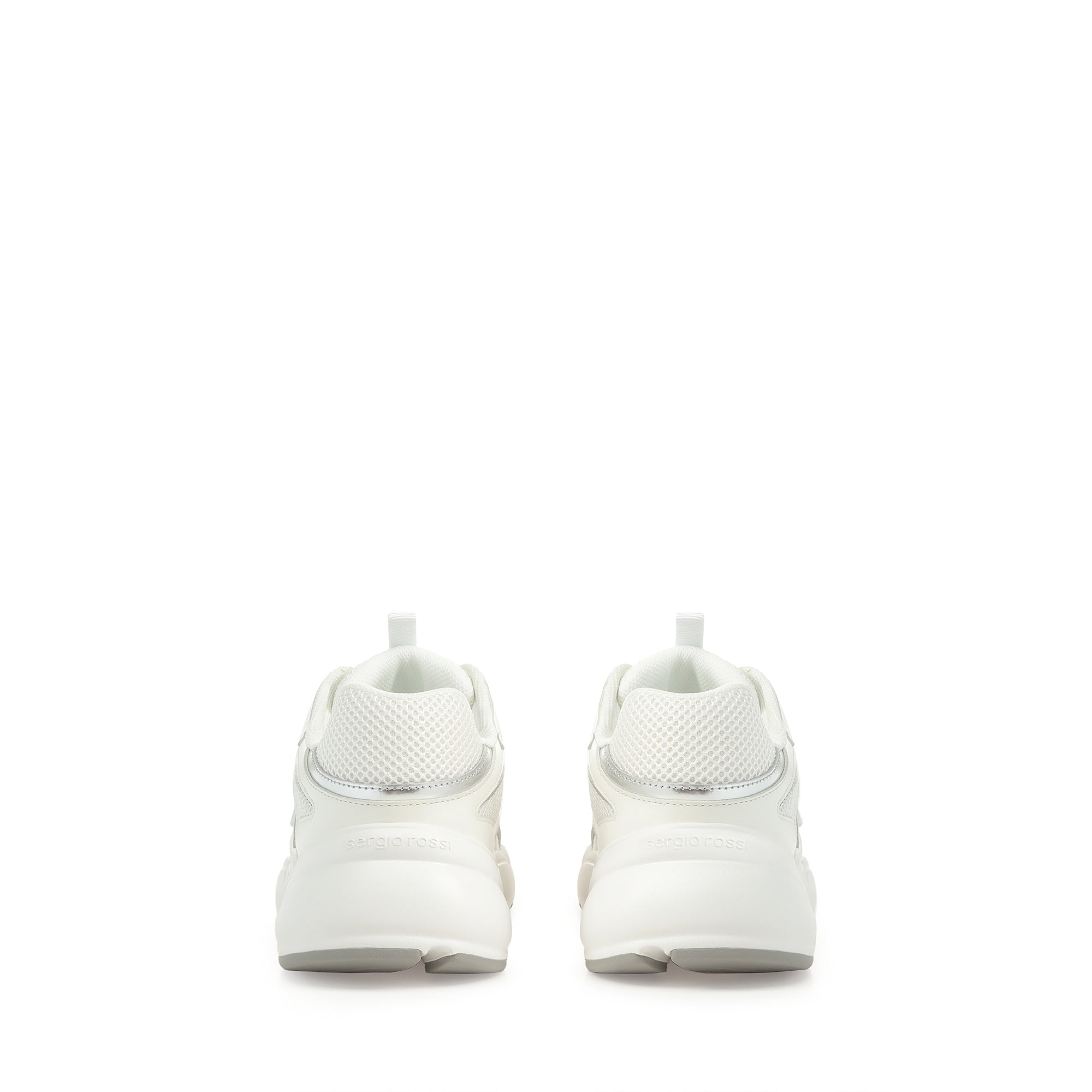 These dynamic sr 0024 sneakers are made of white technical fabric and leather. Their silver mirror-effect inserts add a radiant touch to their silhouette, complete with a logo on the side. For enjoying informal plans in refined, relaxed style.