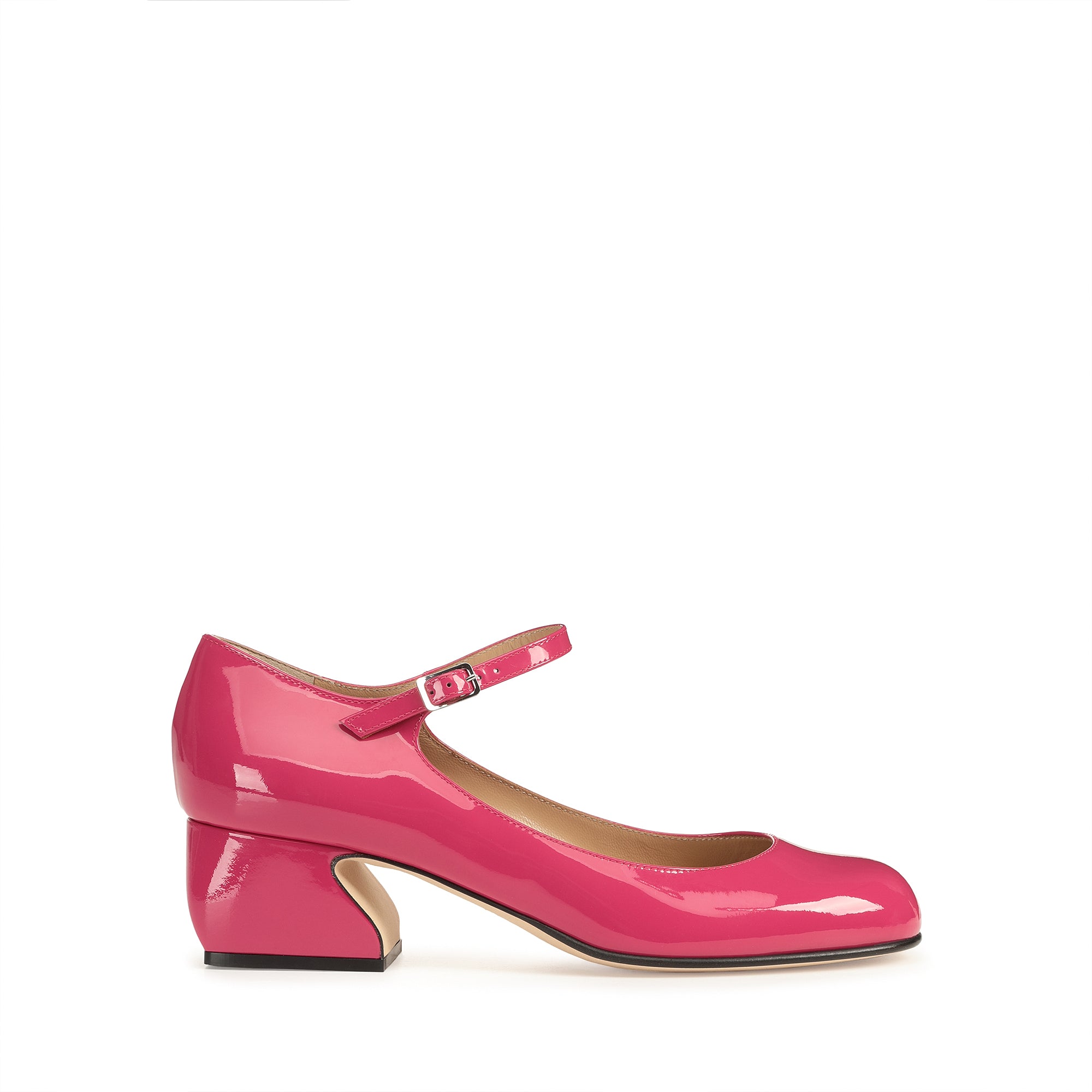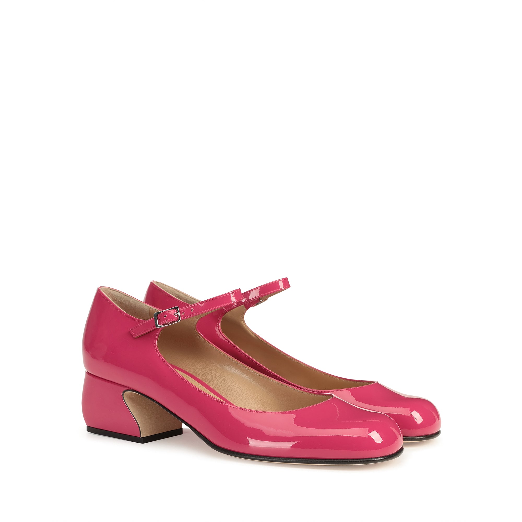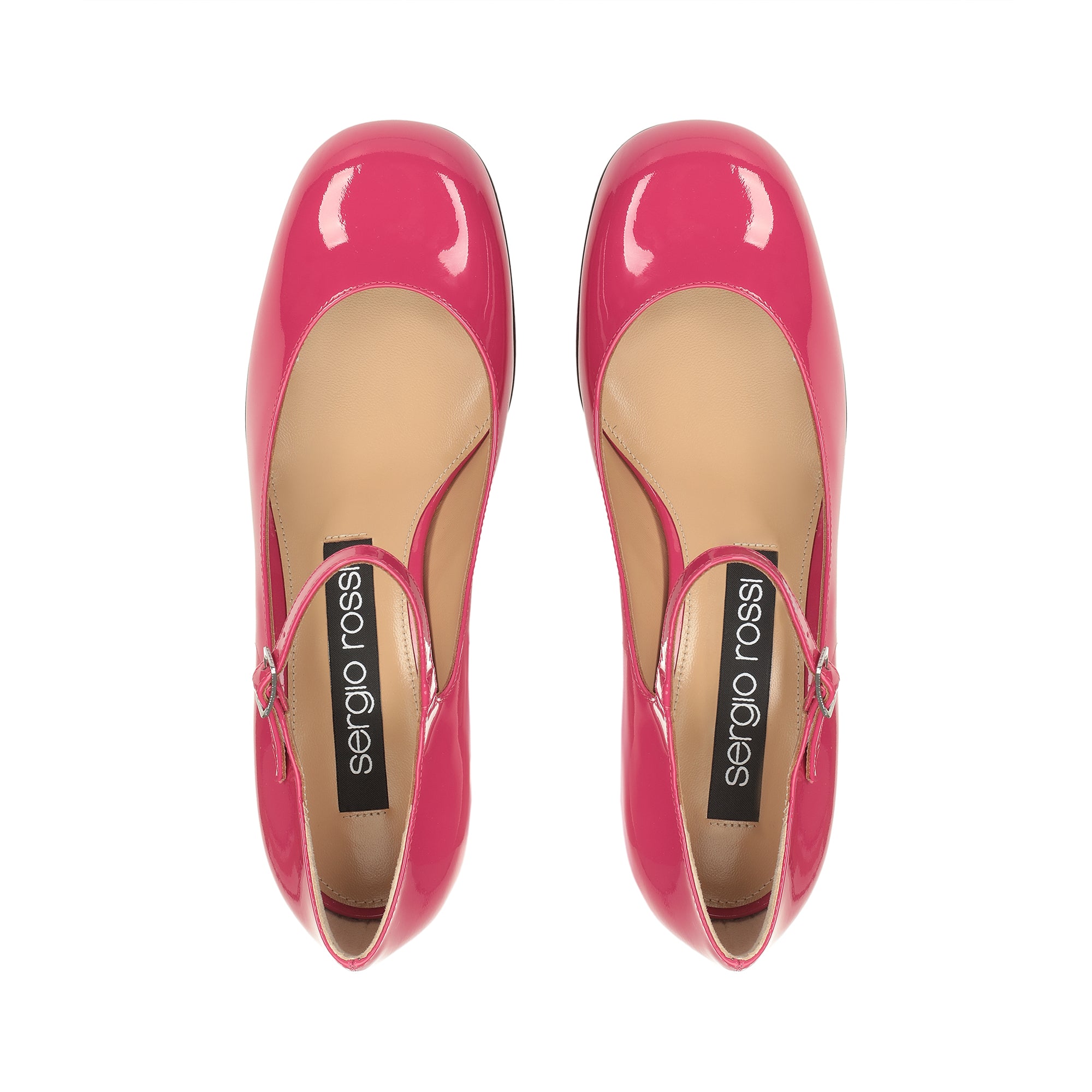 Made of vibrant fuchsia patent leather, these sr SI ROSSI Mary Janes exude a casual femininity. Their sensual silhouette features a delicate strap and a sculptural curved heel, for expressing the dynamic spirit of the contemporary woman.