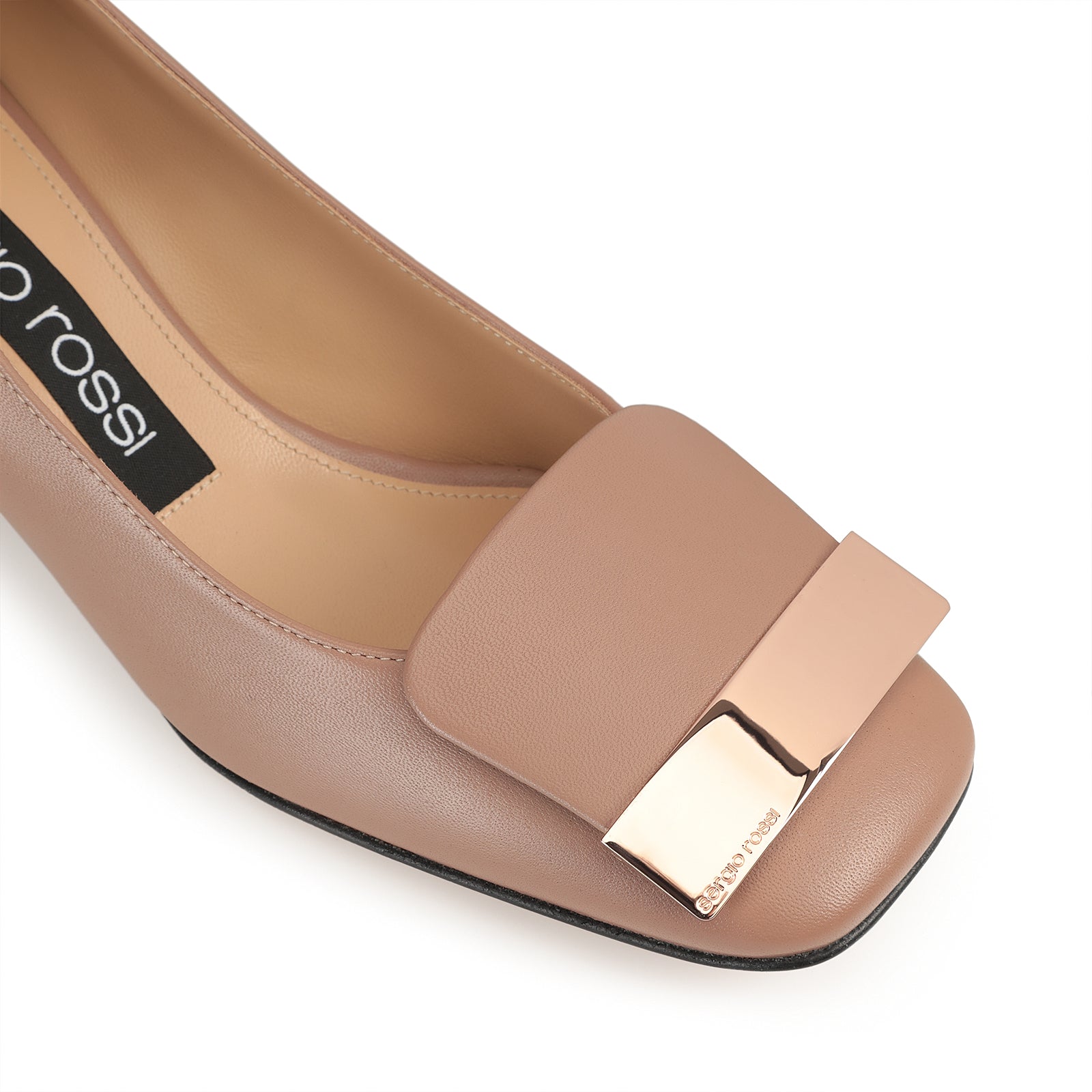 All smooth or grained leathers should be cleaned with a soft, clean, dry cloth to remove excess dust and dirt. To revive the color, apply a small quantity of neutral wax-based shoe cream and buff with a soft cloth. Avoid direct contact with substances that contain alcohol (perfumes, solvents), oils (makeup) and abrasives. Avoid direct exposure to sunlight and heat. Do not expose to humidity. In the case of direct contact with water, allow to dry carefully in a cool, well-ventilated place. Always put the shoes away in the two separate dust bags provided.