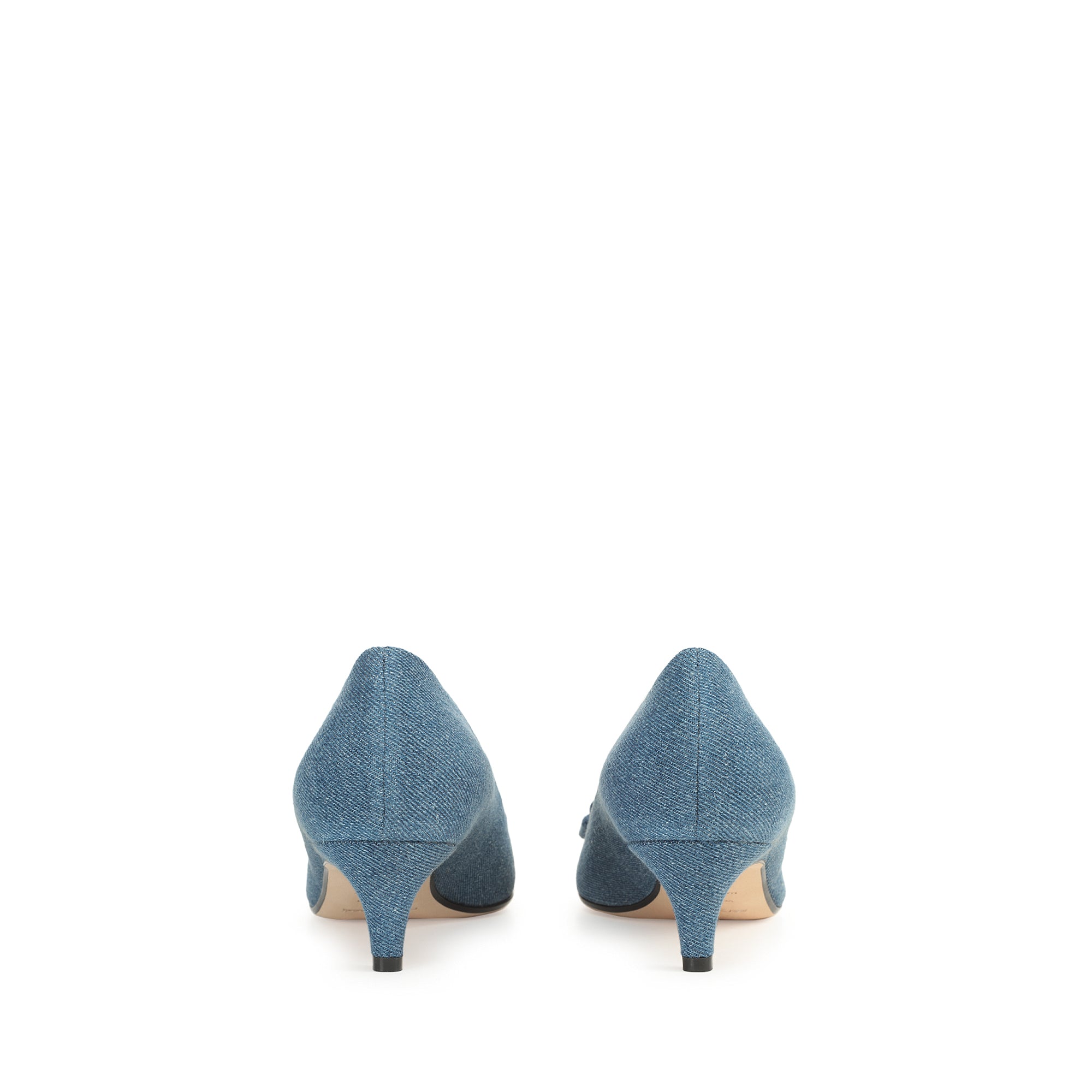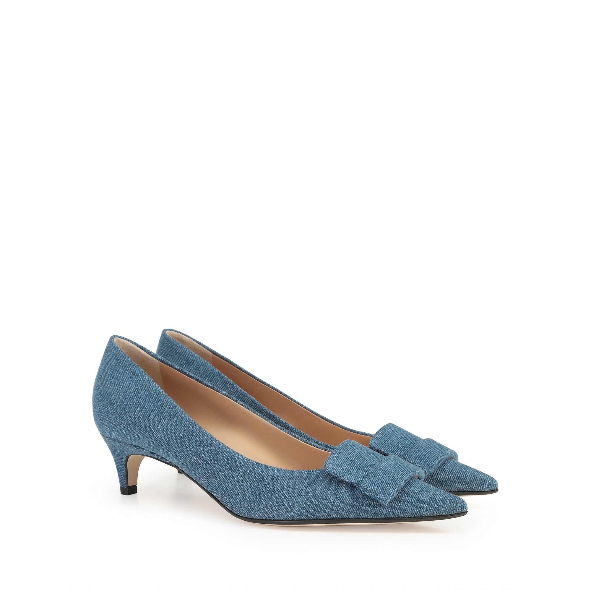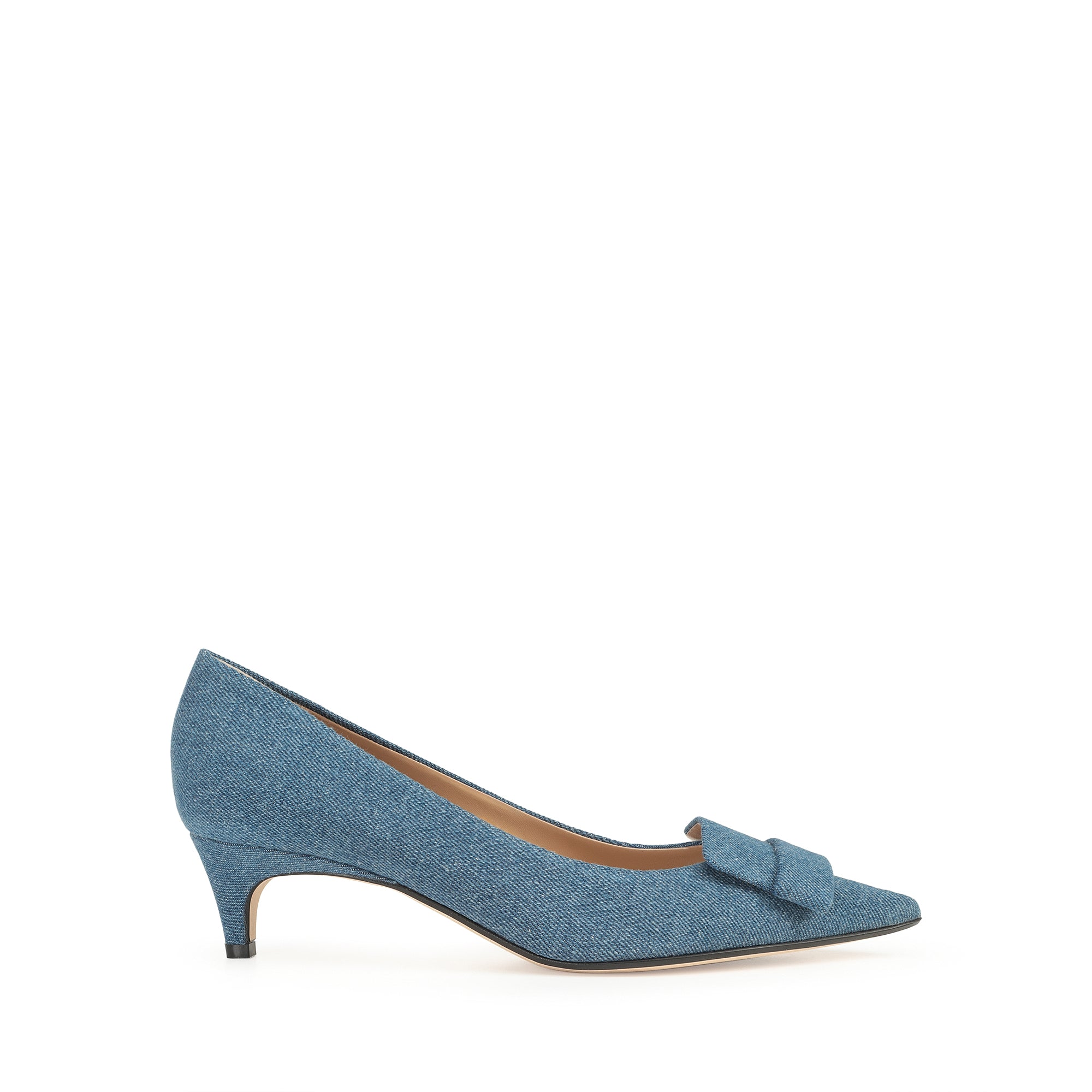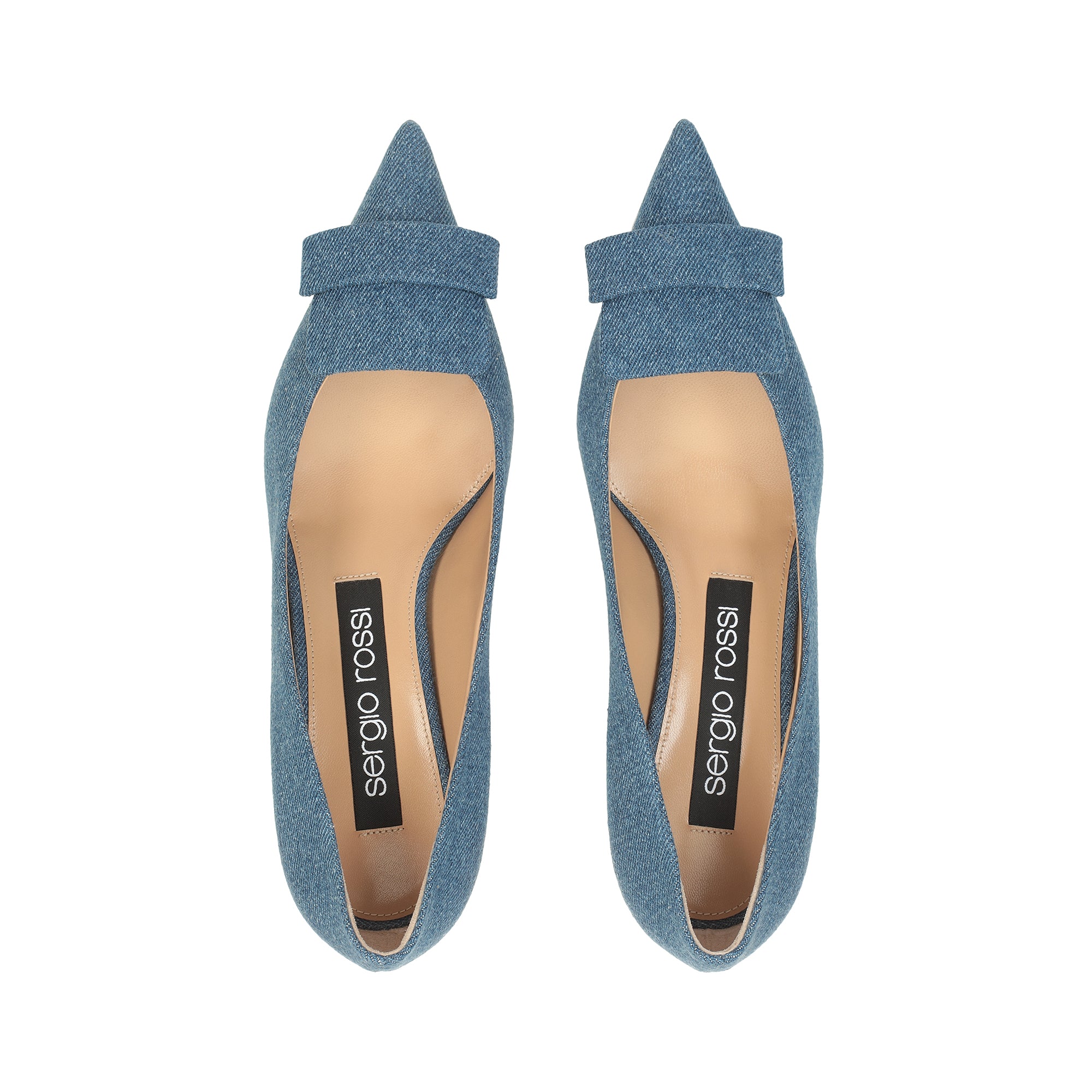 Made of a blue denim fabric, these sr1 pumps show off the contemporary woman’s casual side. A matching plaque and kitten heel add personality, for a refined and distinctive look whatever the occasion.