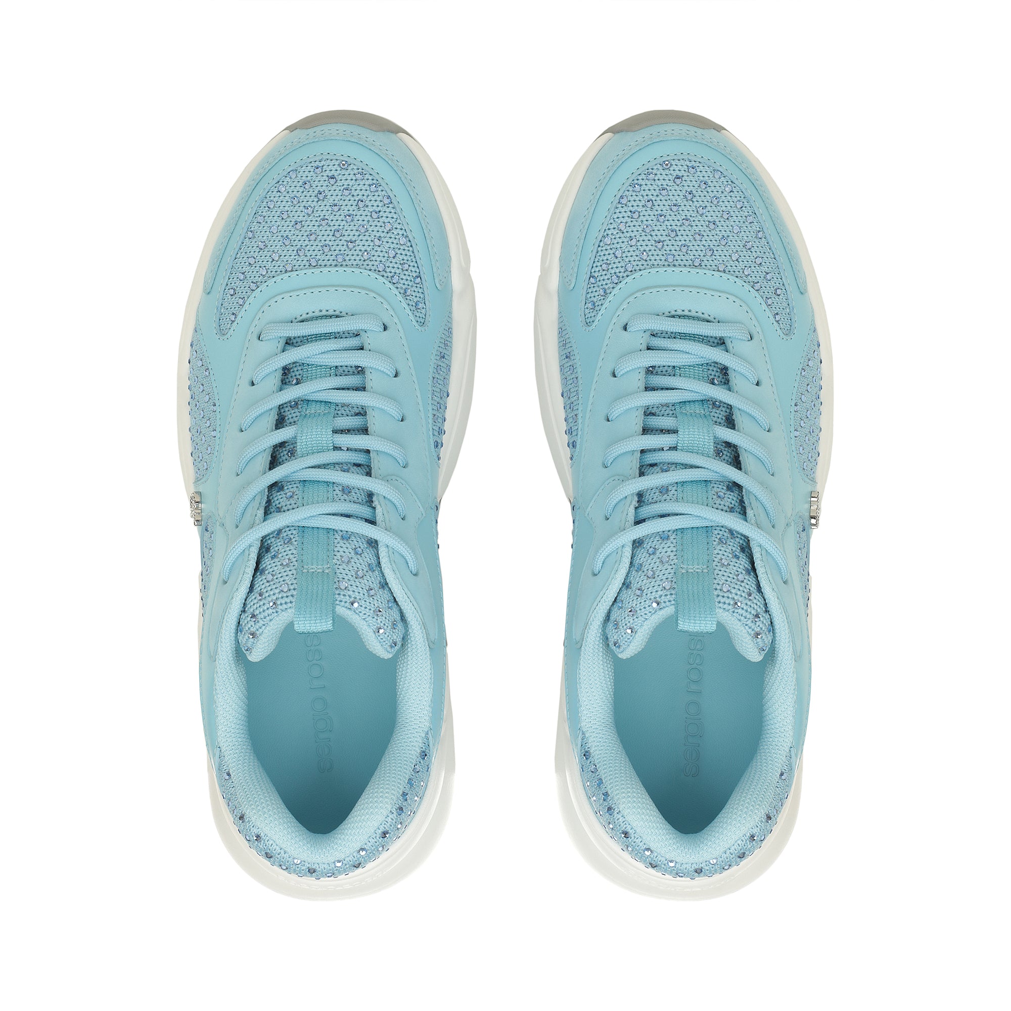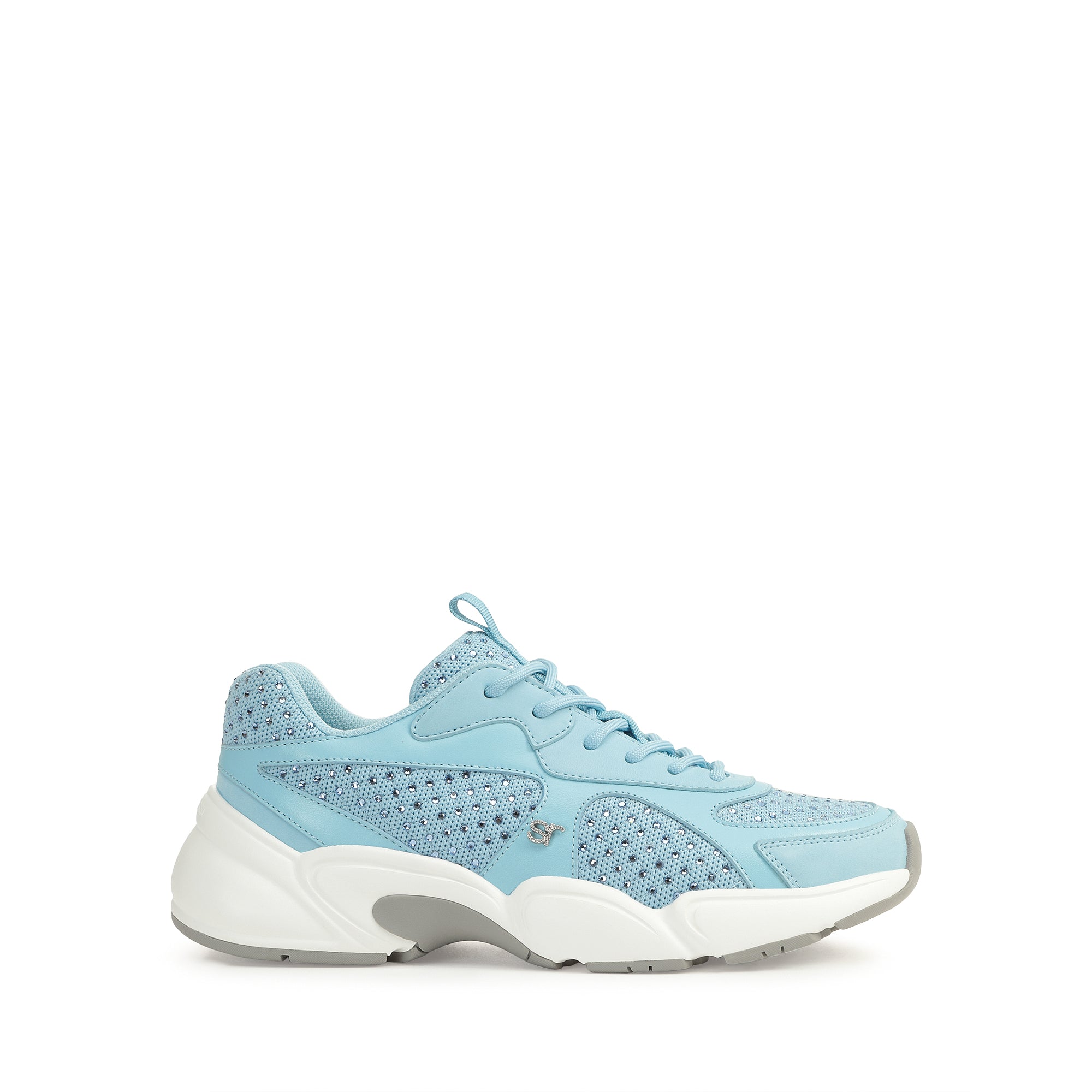 These sr 0024 sneakers in leather, nubuck, and technical fabric exude dynamic femininity. Their sporty silhouette in a gentle pastel shade features a radiant rhinestone embellishment. For the woman who likes to add a precious touch to her off-duty looks.