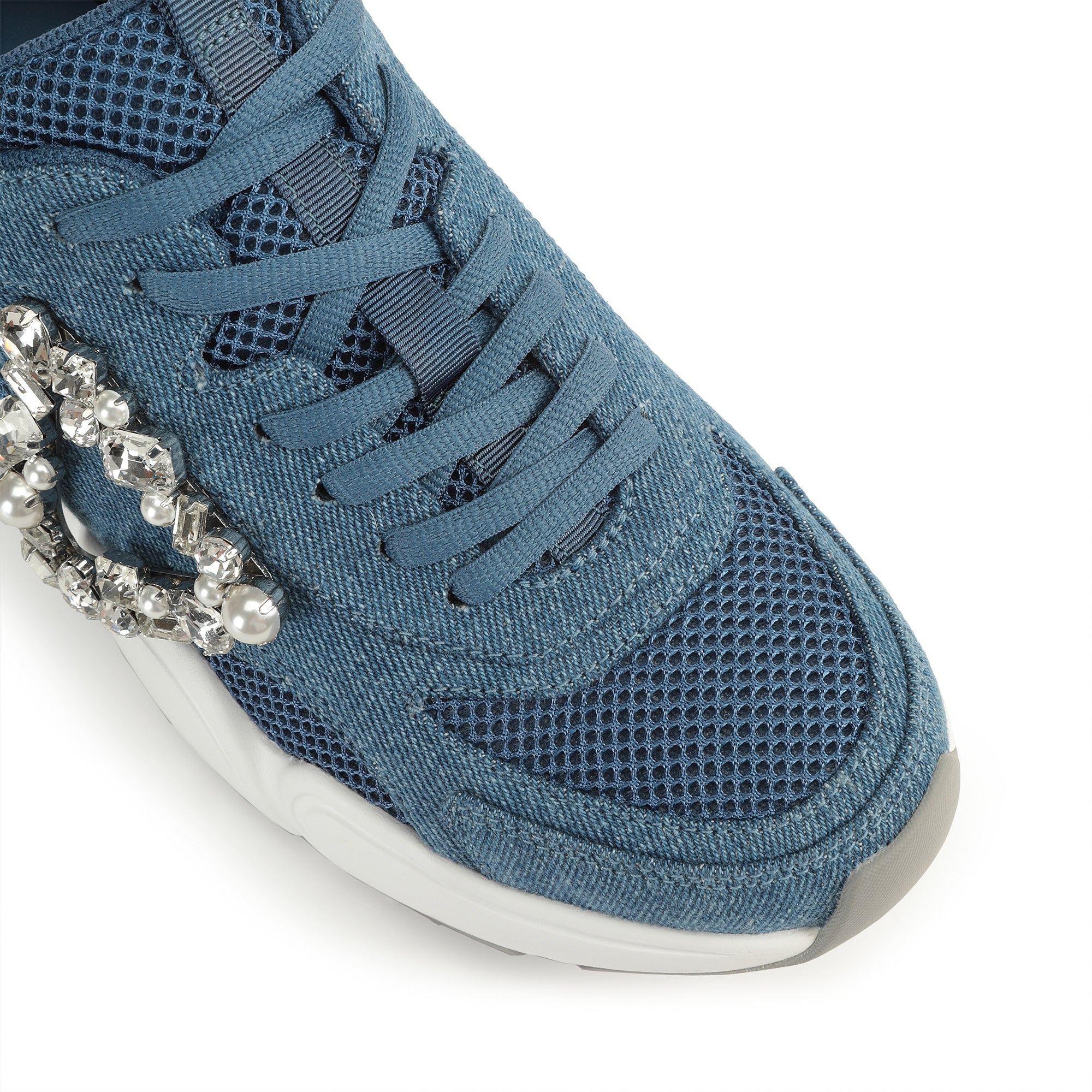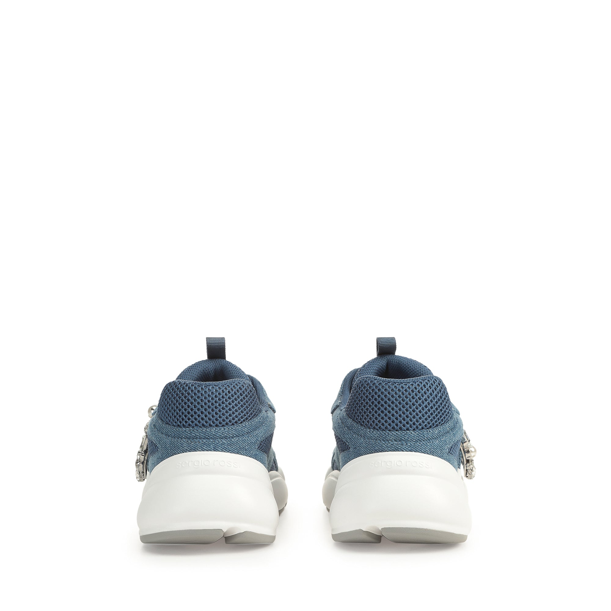 Casual but sophisticated, the sr 0024 sneakers pair a blue denim and technical fabric design with a pearl and crystal embellishment. A staple for the woman in search of a precious look, even during her downtime.