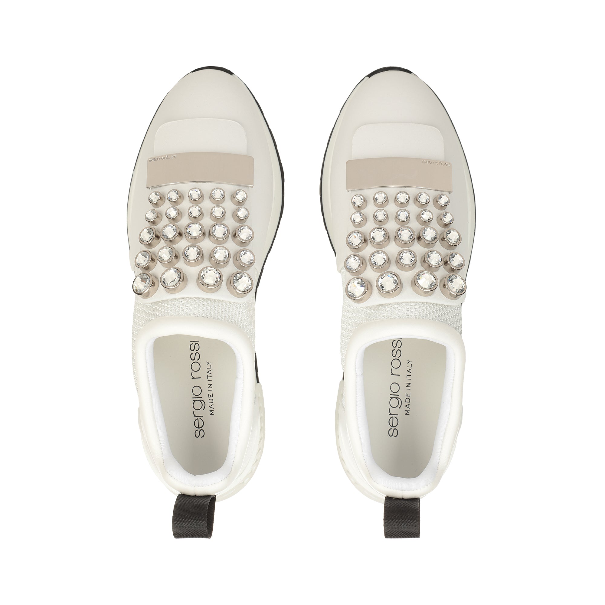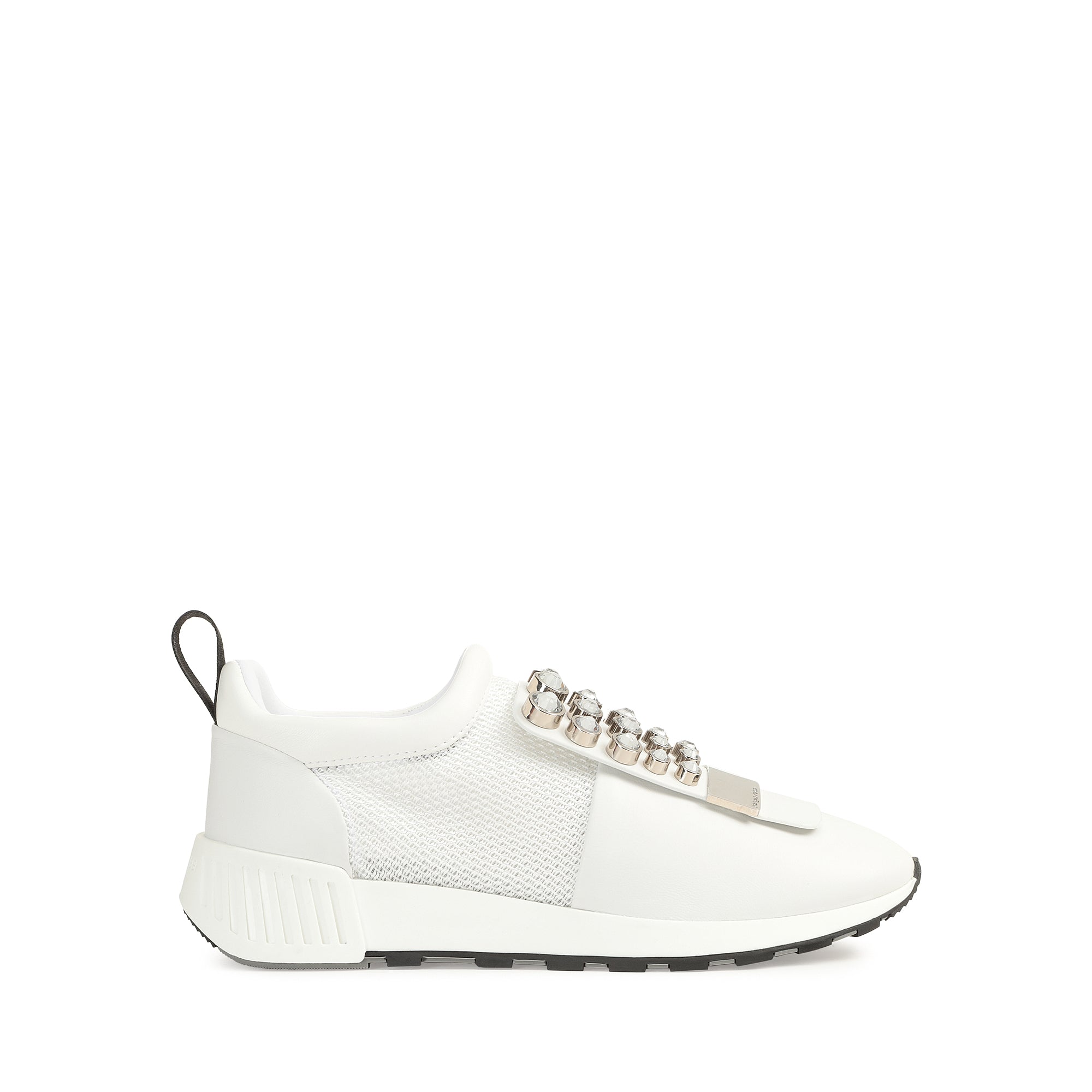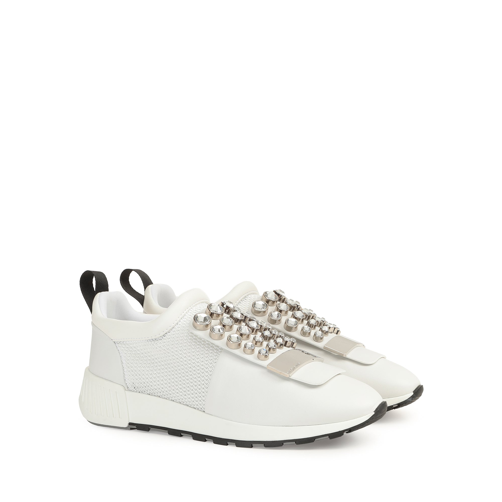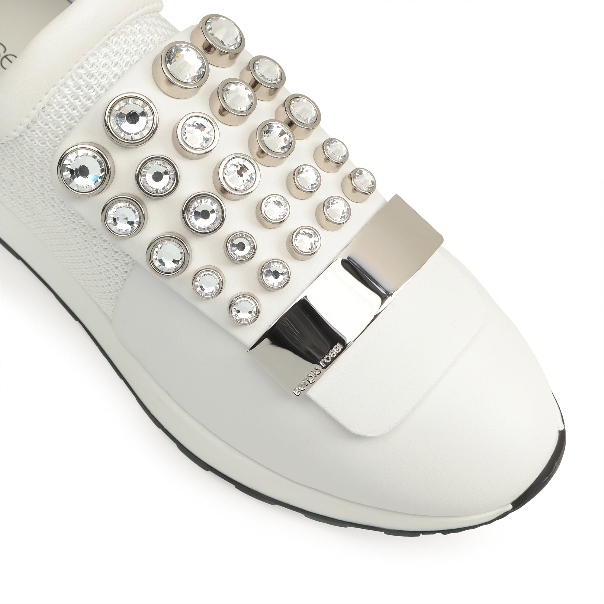 The sr1 Running sneakers in leather and technical fabric offer dynamic style. Their sophisticated all-white design is illuminated by large crystals. The distinctive metal plaque adds the finishing touch. For a sporty chic look with precious appeal.