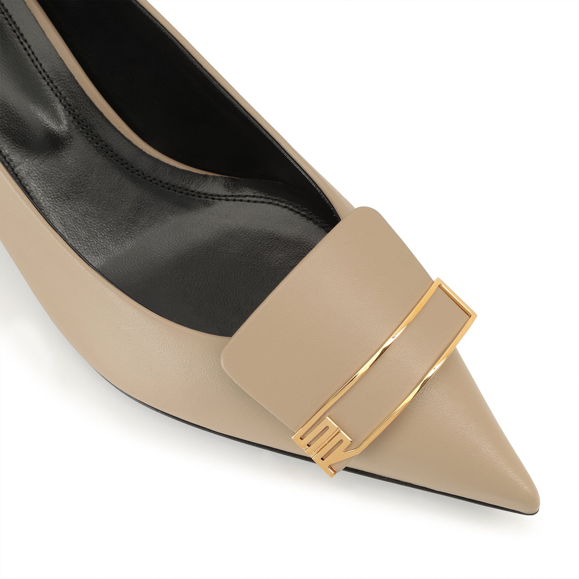 All smooth or grained leathers should be cleaned with a soft, clean, dry cloth to remove excess dust and dirt. To revive the color, apply a small quantity of neutral wax-based shoe cream and buff with a soft cloth. Avoid direct contact with substances that contain alcohol (perfumes, solvents), oils (makeup) and abrasives. Avoid direct exposure to sunlight and heat. Do not expose to humidity. In the case of direct contact with water, allow to dry carefully in a cool, well-ventilated place. Always put the shoes away in the two separate dust bags provided.
