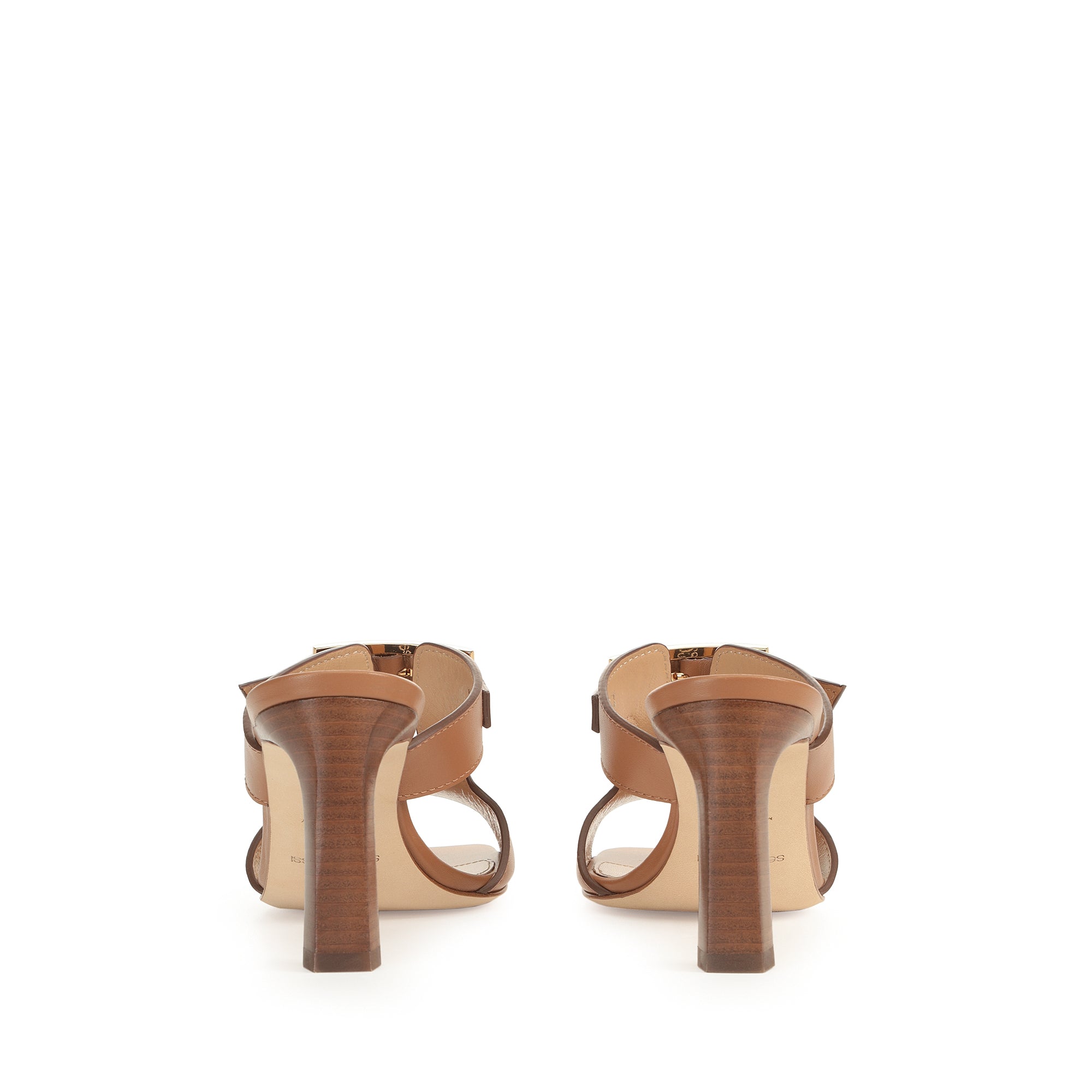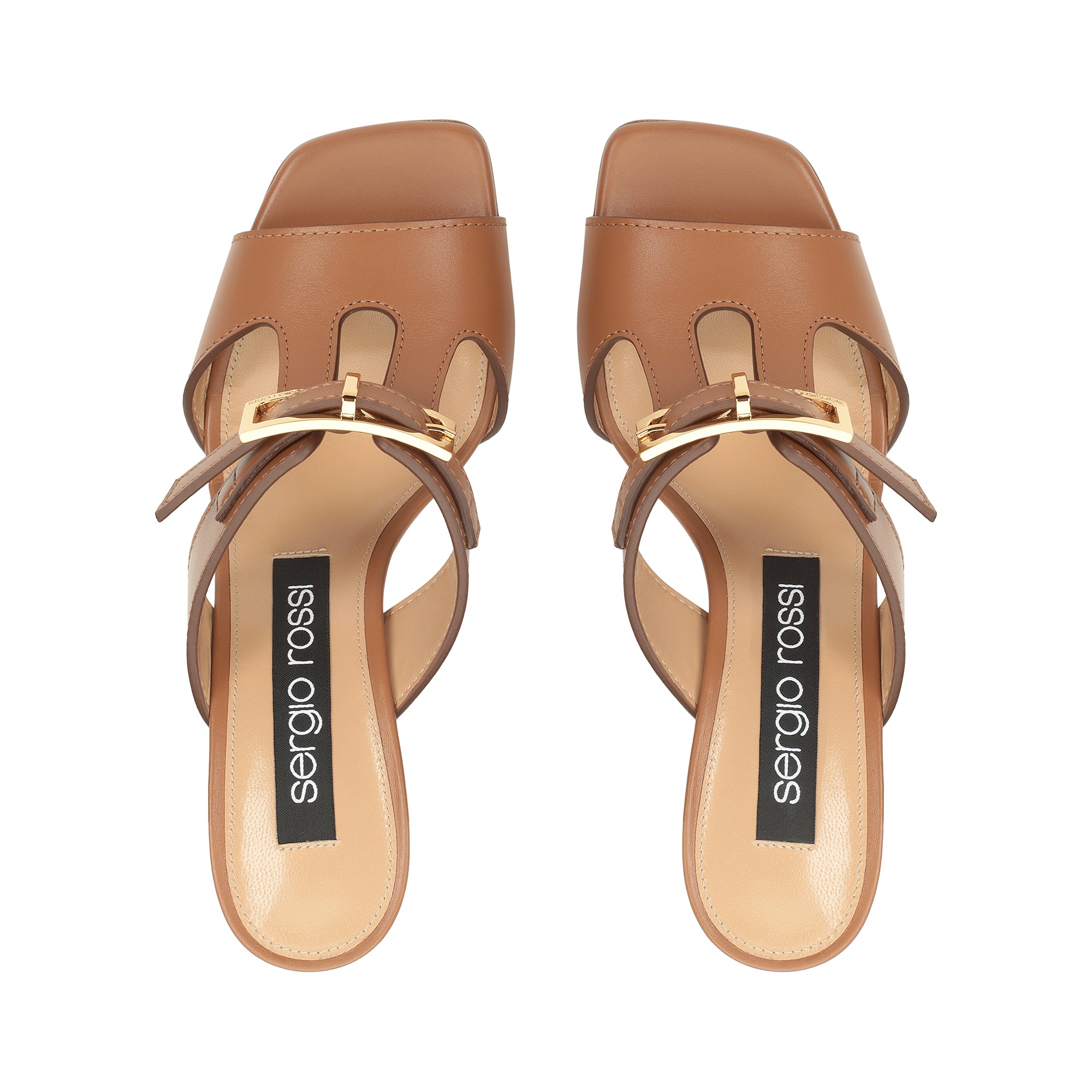 Ces sandales sr Nora en cuir doux et brillant marron clair sont empreintes d'une féminité dynamique. Leur structure à découpe graphique est dotée d'une boucle dorée originale, idéale pour profiter d’une occasion informelle dans un style élégant et précieux.