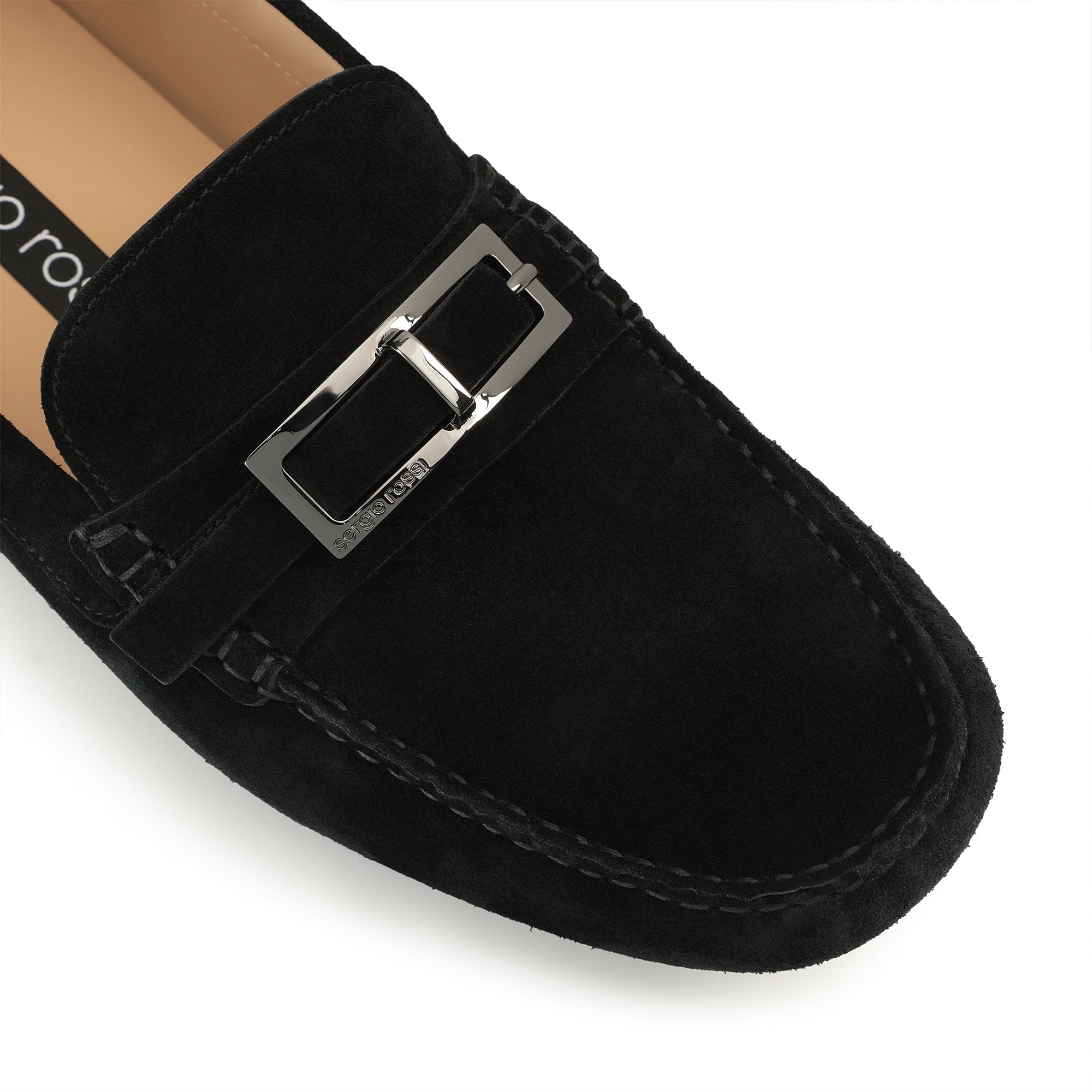 ソフトなブラックスエードを使用したsr Nora ローファー。ラバートレッドと象徴的なメタルバックルのシンプルなシルエットで、カジュアルなスタイルに洗練されたひねりを加えています。